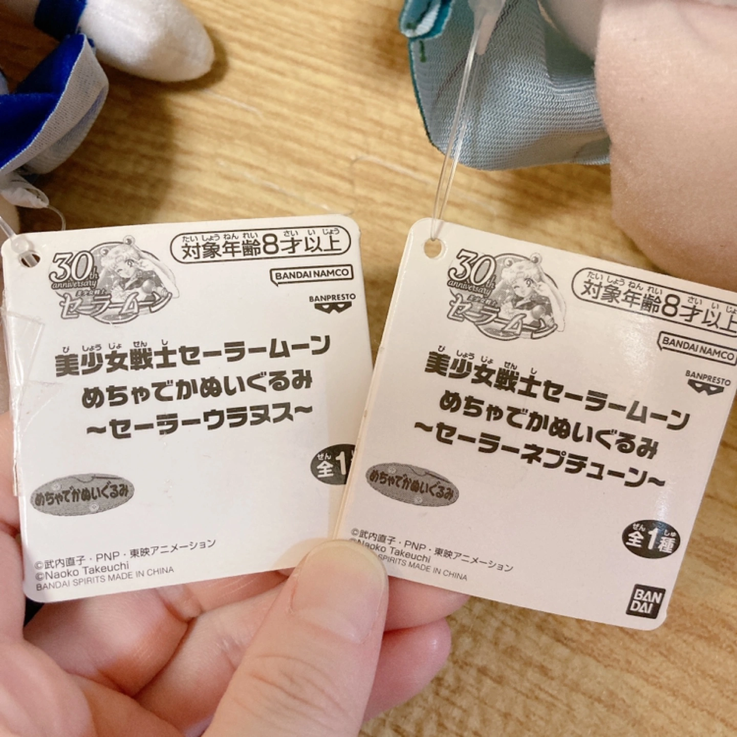 約40cmほどの大きなぬいぐるみです。 クレーンゲームで獲得し、たまに子供たちが遊んでいました。 目立った汚れなどはありませんが、気にされる方はご遠慮くださいm(__)m セーラームーン セーラーウラヌス セーラーネプチューン