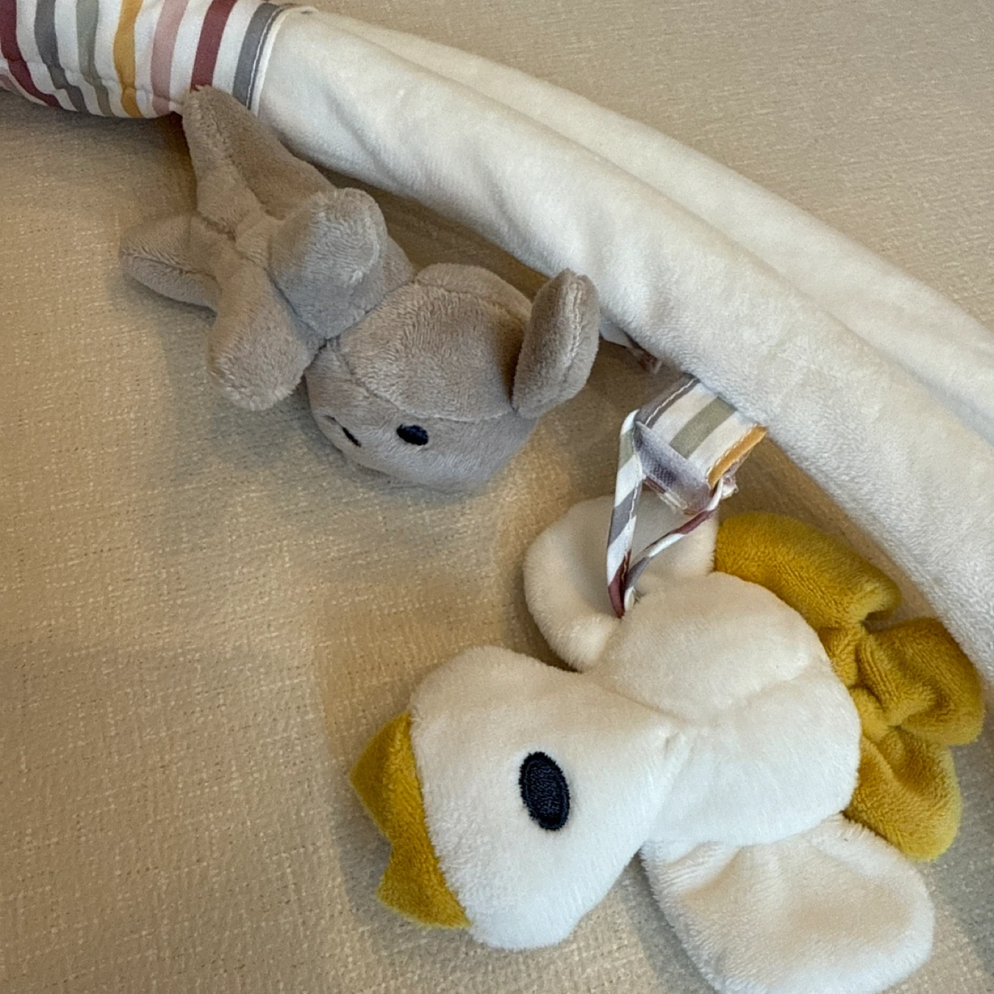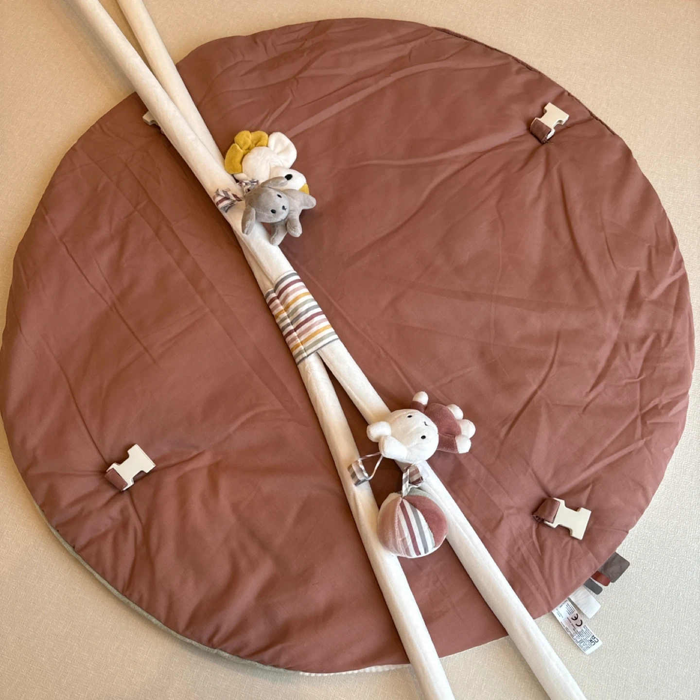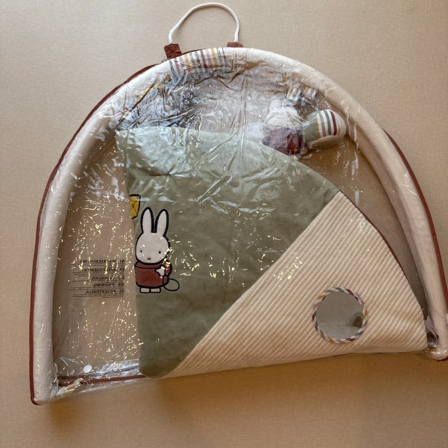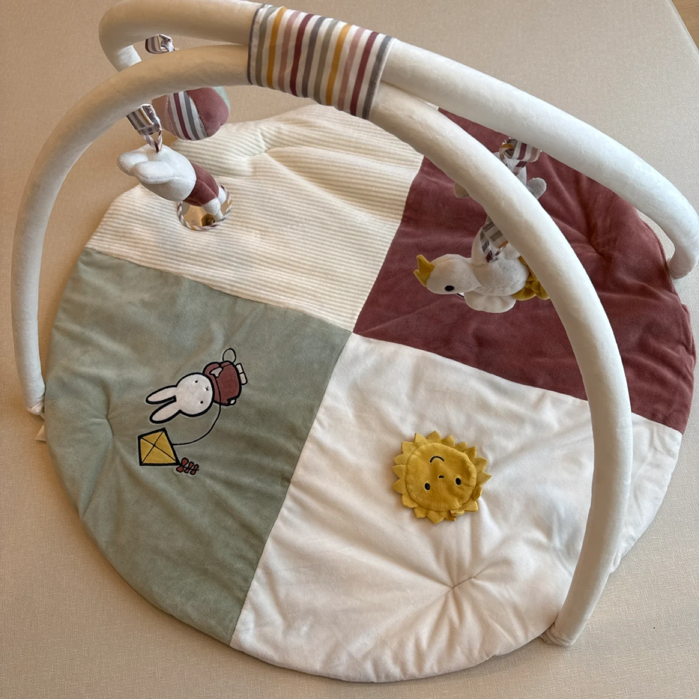 ダッドウェイ DADWAY ミッフィ ミッフィー Miffy miffy ベビージム プレイマット プレイジム 2024年購入 【商品状態】 ミラー部分が傷になってしまっています 生地の性質上、若干裏面に毛玉があります おむつ漏れ、ミルク汚れ等はございません ジム部分はほとんど使用しておりません 全体としてまだまだ綺麗に使っていただけるお品です 優しい色使いの可愛いベビージムマットです。 布製なので肌触りが良く強くて耐久性に優れています。 ジム部分は取り外し可能なのでねんね期・腹ばい期が終わった後もおしゃれなプレイマットとして活躍します。 素材が異なる4種類のマットには、赤ちゃんが大好きなパリパリ音や寝返り応援ミラーが付いていて、五感に刺激を与えます。 ミッフィーたちの4種のおもちゃがついたジムはお腹を押すとキュッキュ音が鳴るミッフィー、カラカラ音が鳴るスナッフィー、カシャカシャ音が楽しいとり、鈴の音がキレイなミラー付きボールと楽しい仕掛けがいっぱいです。 プレイマットも付属のおもちゃも汚れてしまった場合は取り外して洗濯できるので、いつでも清潔に使用することができます。 コンパクトに収納できるバック付き。(一部傷あり) ネットでは販売終了多数の貴重なお品です。 推奨年齢:0〜18ヶ月 サイズ : 直径(86cm)高さ(44cm) 素材 : コットン・ポリエステル製 カラー:ピンク系