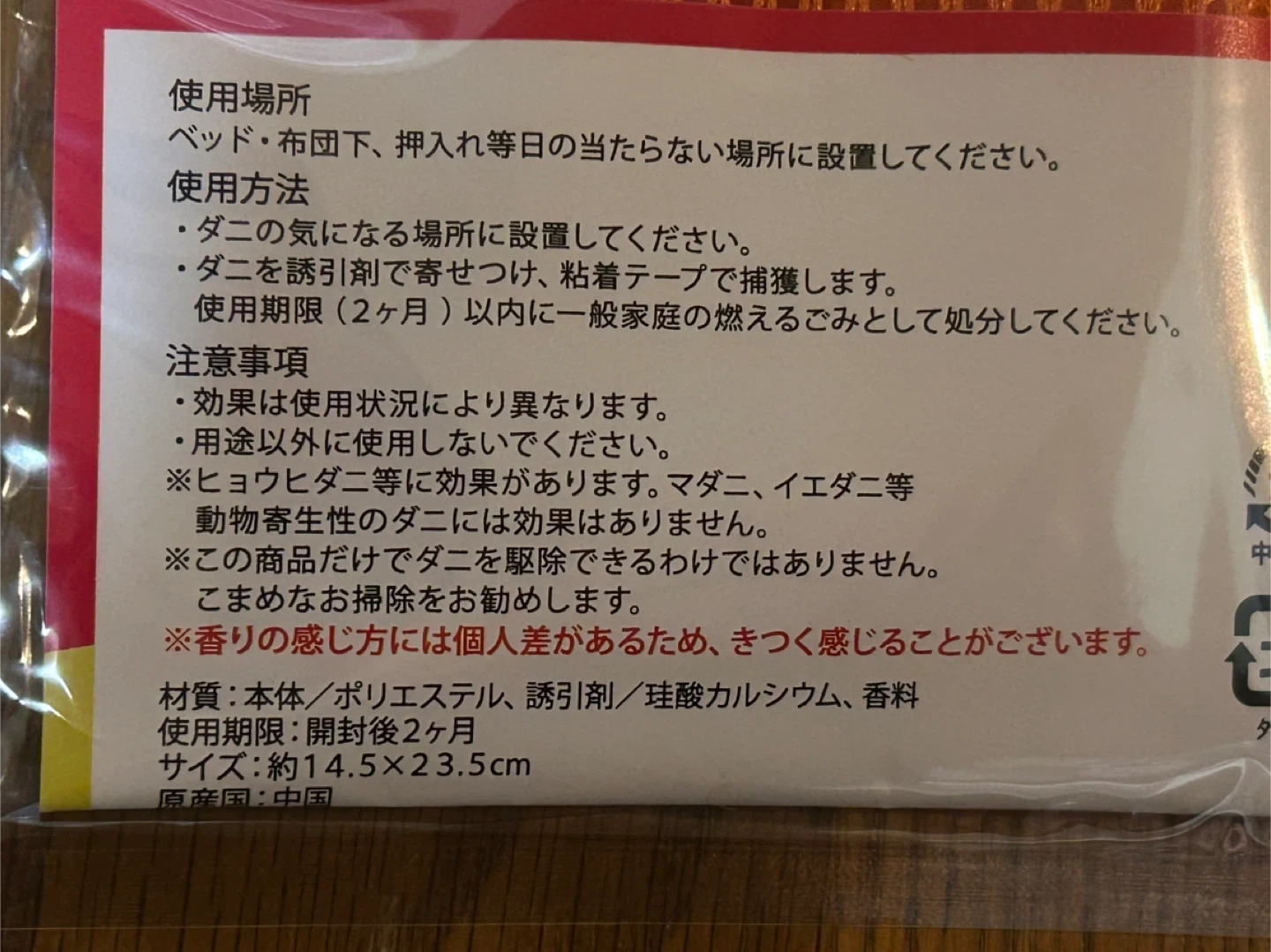 ダニ捕獲シート7枚セットです ・サイズ:約14.5×23.5cm ・オレンジ色のメッシュタイプ ・殺虫剤成分不使用 ・粘着方式でダニを捕獲 ・使用期限:開封後2ヶ月 ご不明点があればお気軽にご連絡ください