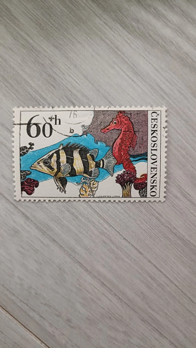 チェコスロバキアの切手です ・60thの文字が見えます ・魚とタツノオトシゴの絵柄です