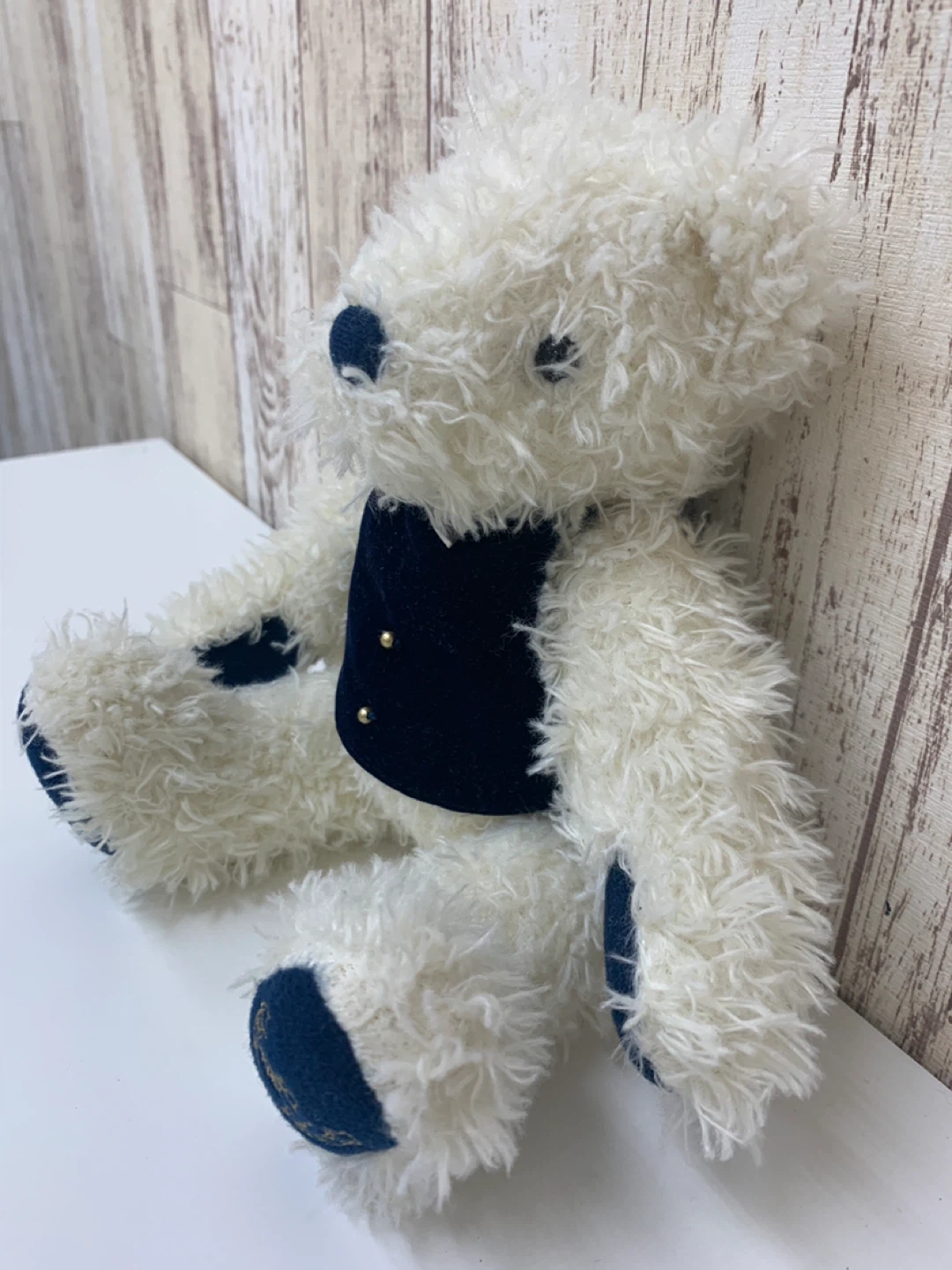 すべて見るテディベアのぬいぐるみです ・カラー:白、紺 ・2016年の記載あり ・フォーマルなベスト着用 ・足裏に刺繍あり ・全体的にきれい 中古品であることご了承ください