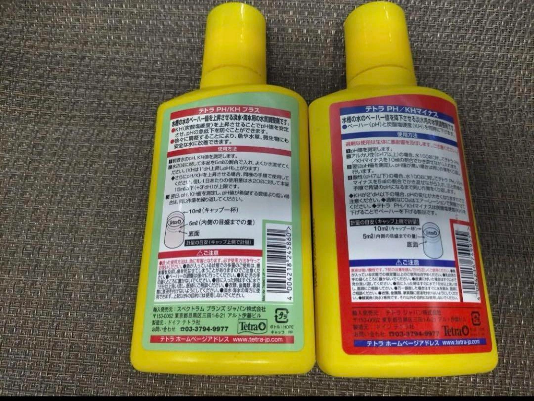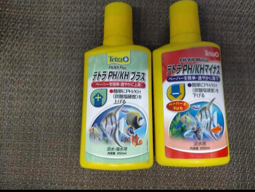 【テトラ pH/KH プラス】 ※水槽の水のpH値を上昇させる淡水・海水用の水質調整剤。 ※KH(炭酸塩硬度)を上昇させることでpH値を安定させます。 ※pHの急低下を防ぐことができます。 ※徐々に調整することにより、魚や水草、微生物にも安全な水に改善できます。 ※ペーハー調整剤。 【テトラ pH/KH マイナス】 ※pH値が7.5以下で、炭酸塩硬度が4°dHの熱帯魚水槽の水を作るためのものです。 ※炭酸塩硬度を正確に調整することで、pH値を恒常的に調整することができます。 ※急性アンモニア中毒の治療に。 ※CO2の放出により、植物の成長が改善されます。 ※安全性が高く、使用方法も非常に簡単です。 ※すべての淡水魚水槽に対応。 ◆テトラ・PH/KHプラス(250ml): 保管/未使用品 ※テトラ・PH/KHプラス: 淡水/海水用/簡単にPH/KH(炭酸塩硬度)を上げる商品です。 ◆テトラ・PH/KHマイナス(250ml): 保管/未使用品 ※テトラ・PH/KHマイナス: 淡水用/簡単にPH/KH(炭酸塩硬度)を下げる商品です。 ◆《 私的簡易チェック内容 》◆ ※中 身確認のため一度開封致しております。 ※外観につきましては、スレ・キズ・汚れ・色あせ感などが有ります。 ※出品物は全て3N、専門知識が無く詳細は未確認のため一切の保証(補償)はできかねます。 ご希望の方はお気軽にご連絡ください。