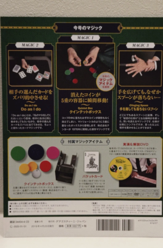 デアゴスティーニのザ・マジック No.03です 【情報】 ブランド:デアゴスティーニ 商品:ザ・マジック No.03 付属品:DVD、クインテットボックス 【状態】 未使用品 DVDの年式:2019年 こちらはMAGIC 1の手品だけになります