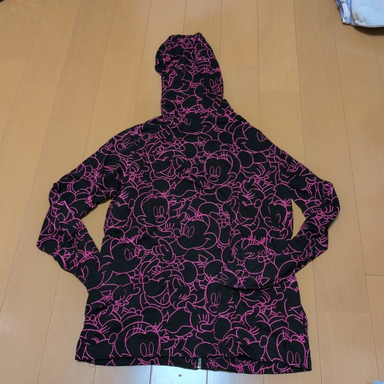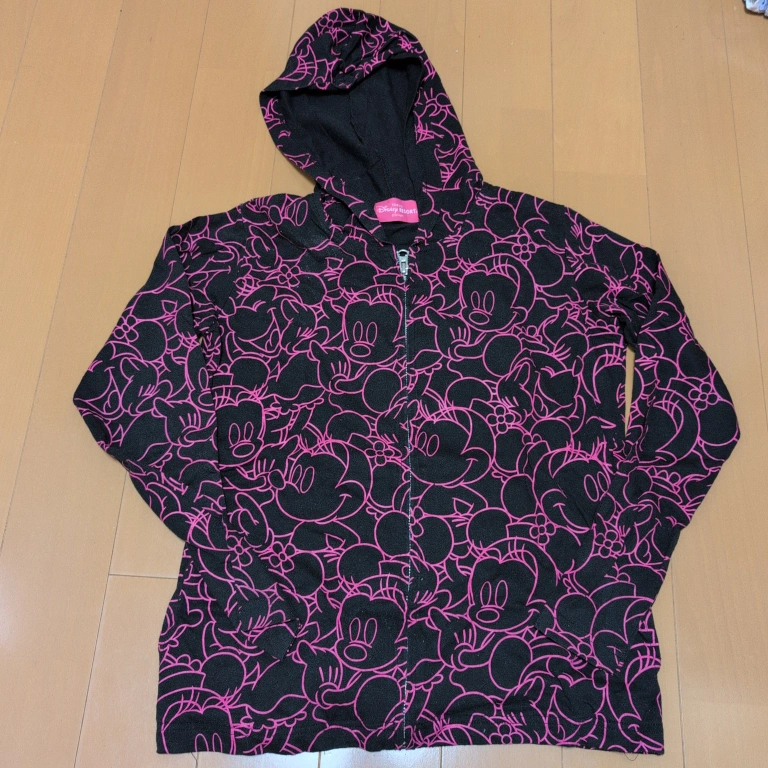 ディズニーリゾートのパーカーです ・カラー:ブラック、ピンク ・サイズ:不明(タグに記載なし) ・ミッキーマウスのデザイン ・使用感少なめ 中古品であることご了承ください