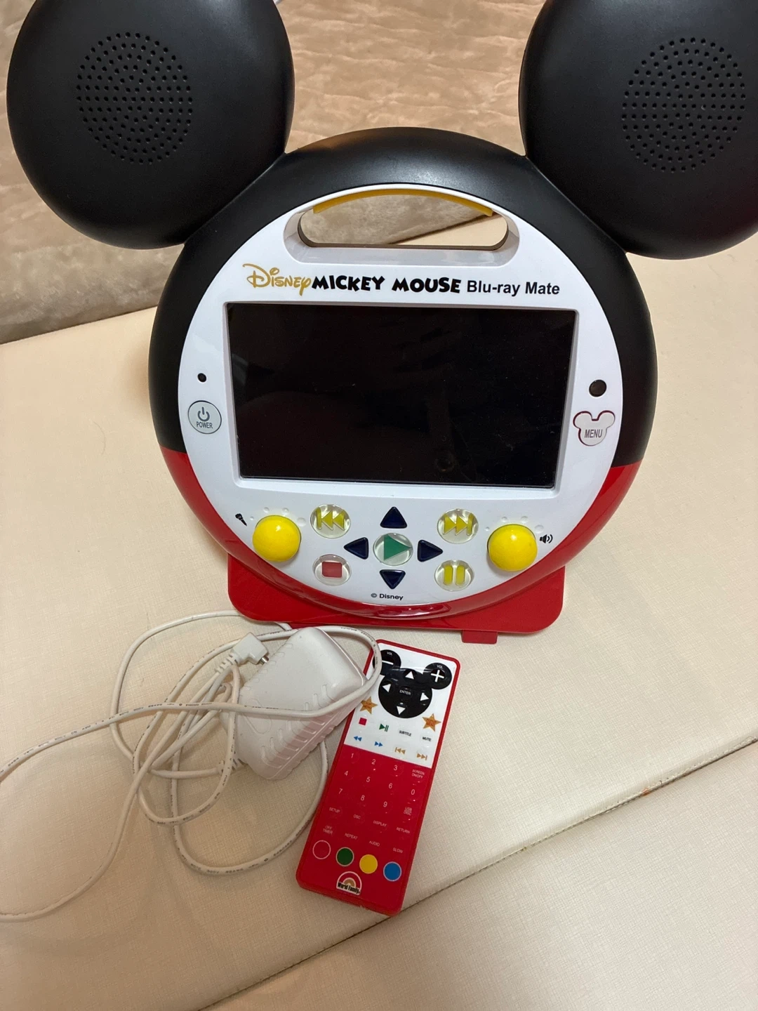 ※画面にブルーライトカットの保護フィルムを貼っています! ディズニーのミッキーマウス Blu-ray Mateです。 【情報】 ブランド:ディズニー 商品名:MICKEY MOUSE Blu-ray Mate 【状態】 使用感少なめです。 目立つ傷や汚れはありません。 【付属品】 リモコン、ACアダプター 中古品であることご了承ください World Family English ワールドファミリー イングリッシュ Disney DWE ディズニー英語システム MICKEY MOUSE Blue-ray Mate ミッキーブルーレイメイト DVDプレイヤー ポータブルブルーレイプレイヤー DVD CD 幼児 知育 教材 【型番】BRMATE 【本体サイズ】約:W344×H344×奥行120㎜ 【仕様】 画面サイズ:7V型  対応メディア:Blu-ray、DVD、CDなど 連続再生時間:約3時間 電源:充電式リチウムイオン電池 【セット内容】 ※付属品は写真の品で全てとなります。 (本体、リモコン、電源ケーブルのみ)