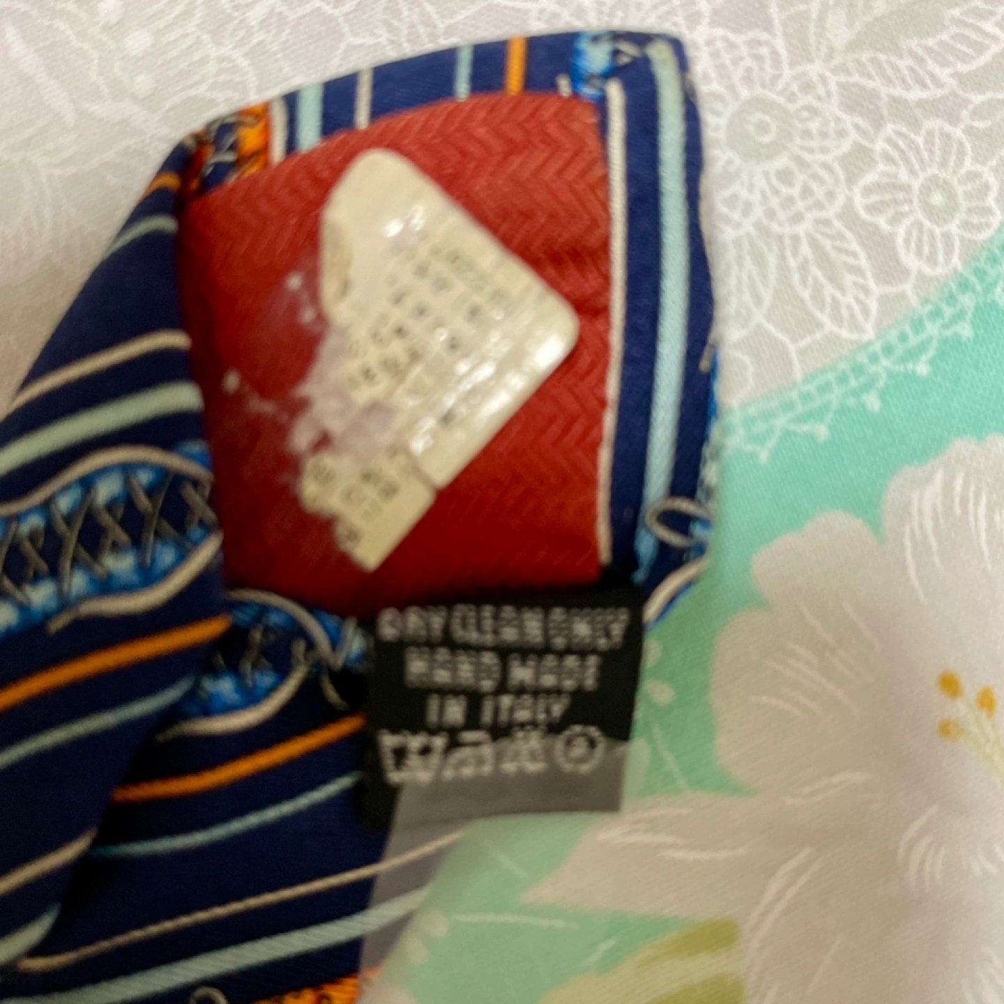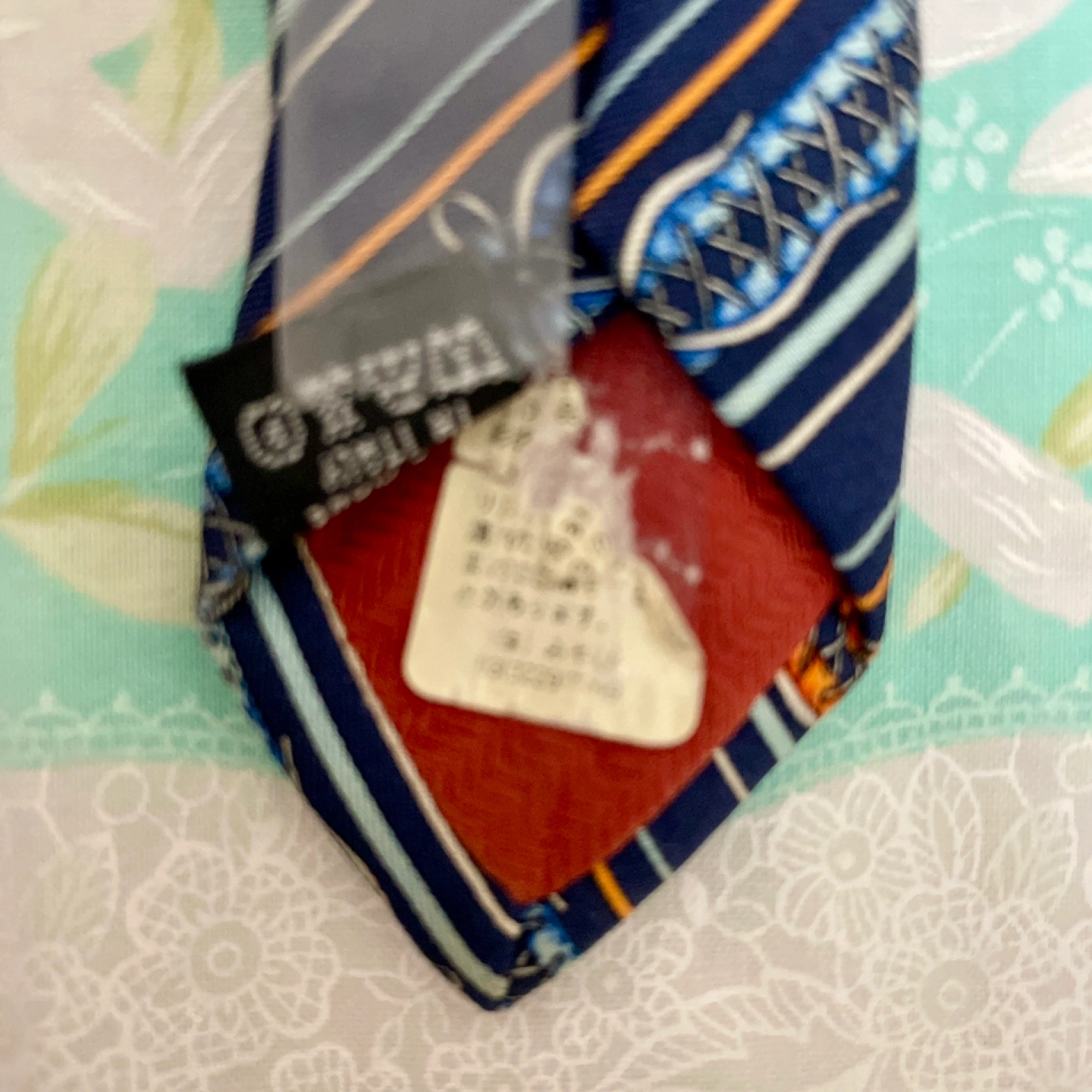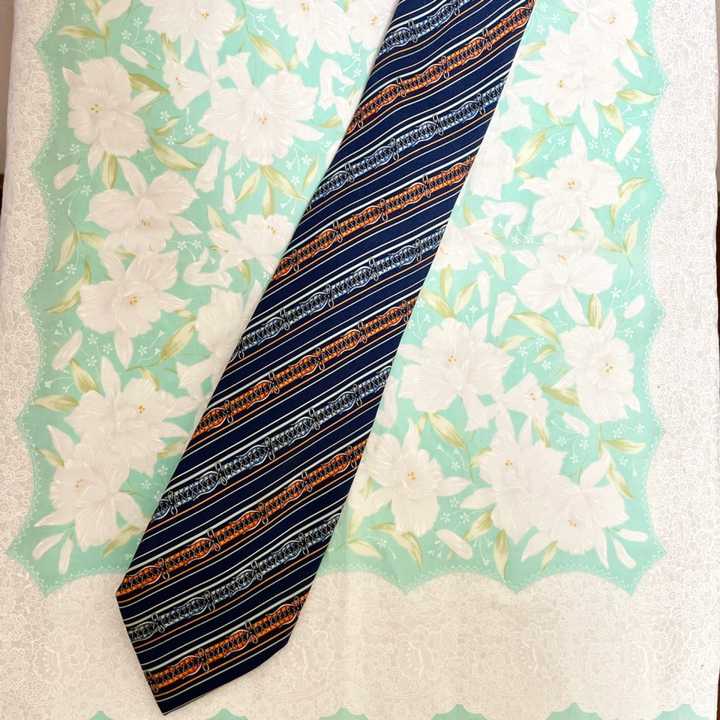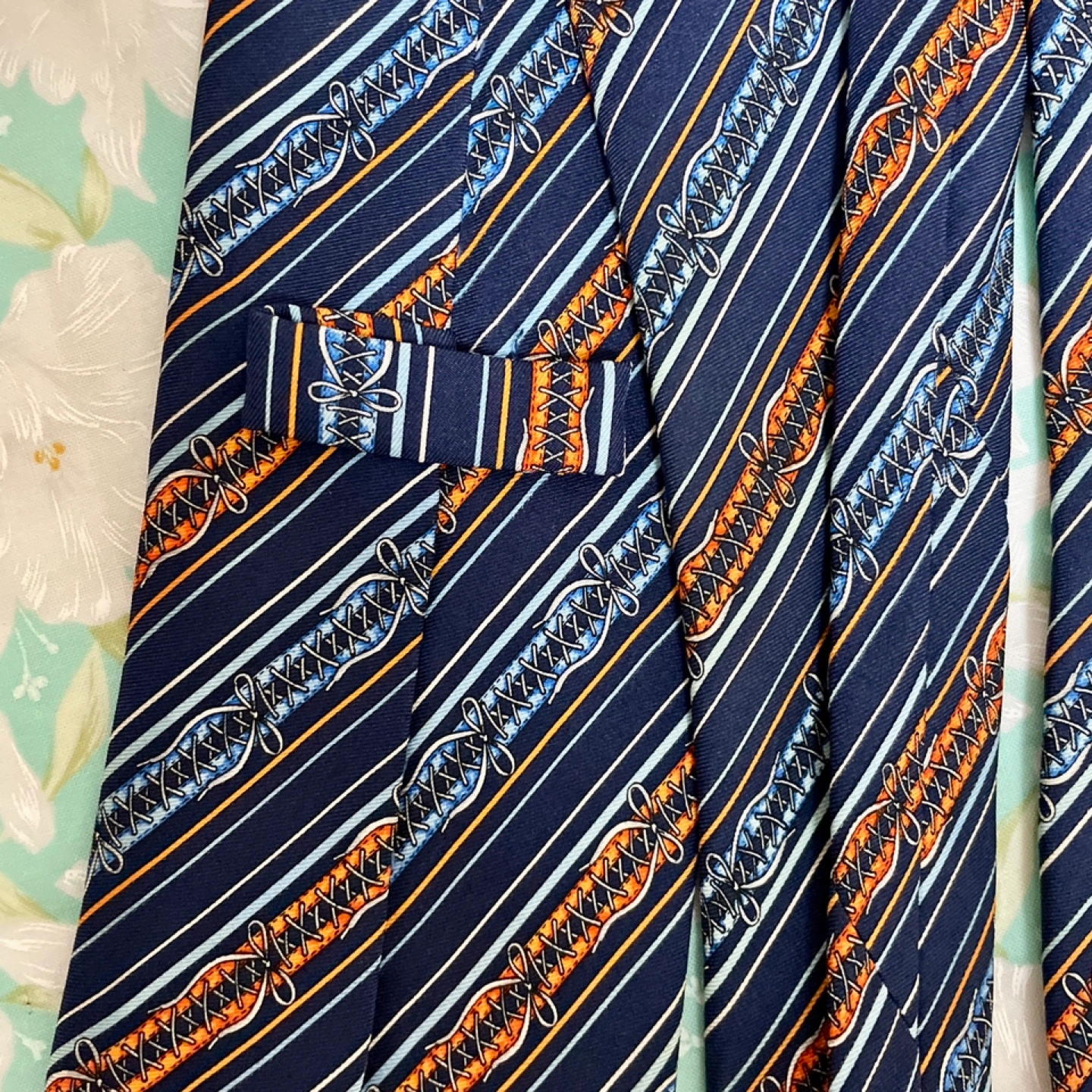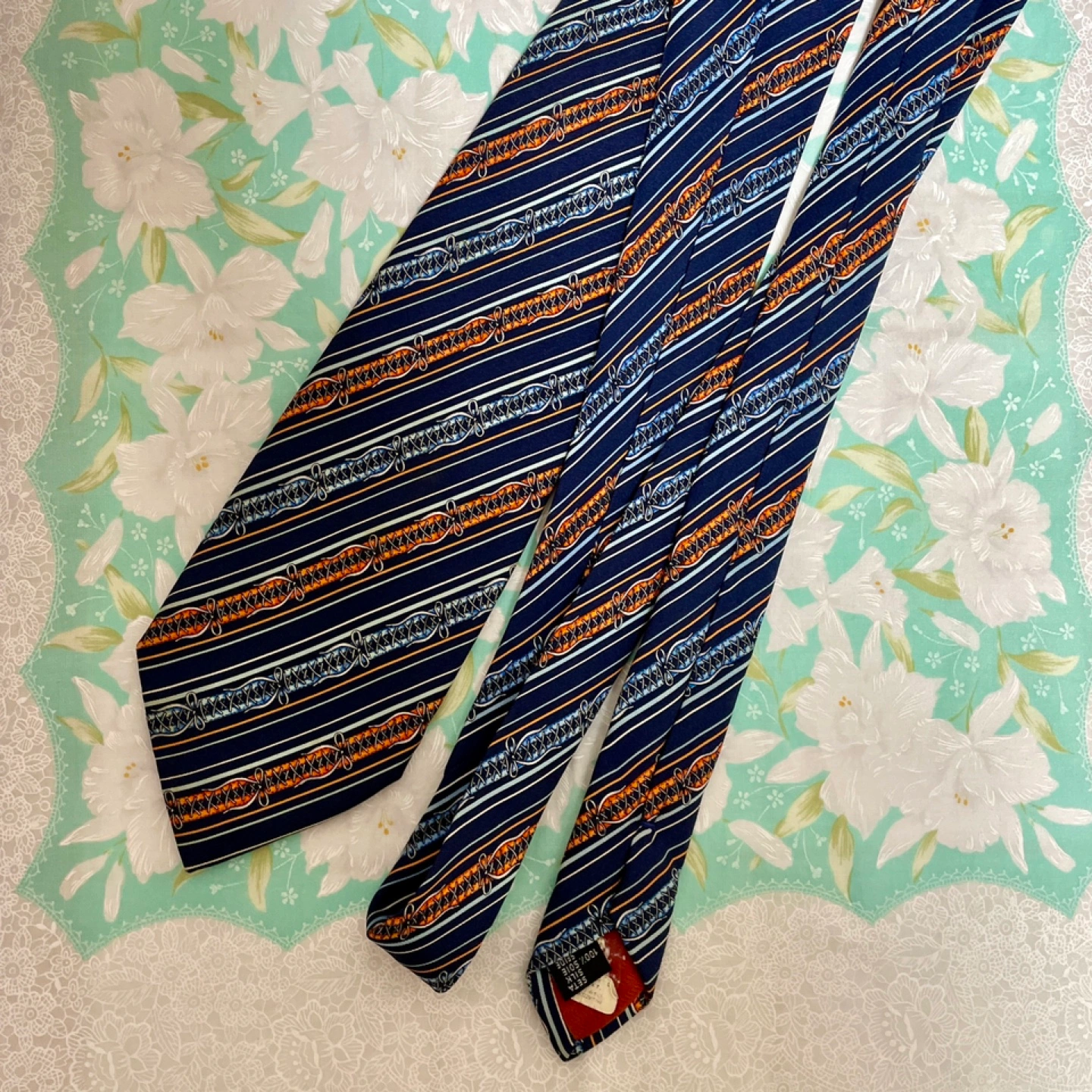 【高級感】 S.T. Dupontのネクタイは、エレガントなデザインと高品質な素材で知られています。シルク製で、肌触りが良く、フォーマルな場面に最適です。 【デザイン】 ネイビーを基調にしたストライプ柄は、ビジネスシーンでもカジュアルな場面でも活躍します。オレンジとホワイトのストライプがアクセントとなり、洗練された印象を与えます。 【ブランドの信頼性】 S.T. Dupontは、長い歴史を持つフランスのブランドで、品質とデザインにおいて高い評価を受けています。 ◆size 全長:約157.5cm 大剣幅:9.0cm 素人採寸です誤差はご容赦下さい。 - ブランド: S.T. Dupont - 色: ネイビー、オレンジ、ホワイト のストライプ - 素材: シルク - 製造国: フランス -写真の如く裏地の記載貼り付け文があせてます。新品で購入し、着用していました。 受け渡し場所 東中野駅または落合駅周辺 ご覧いただきありがとうございます。