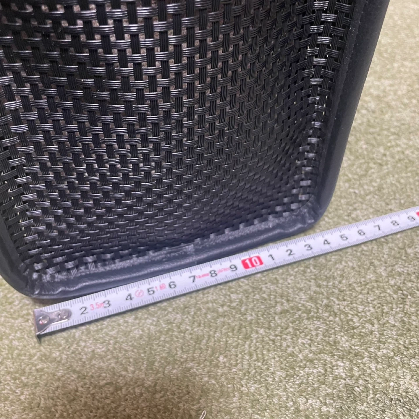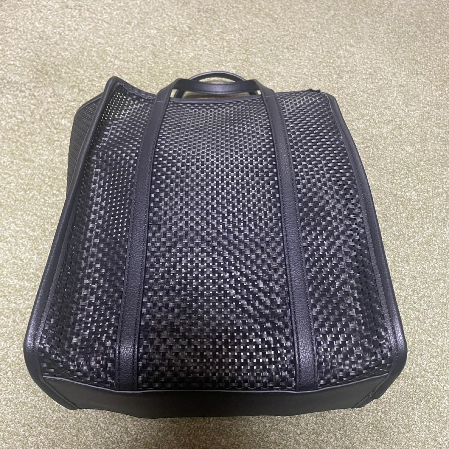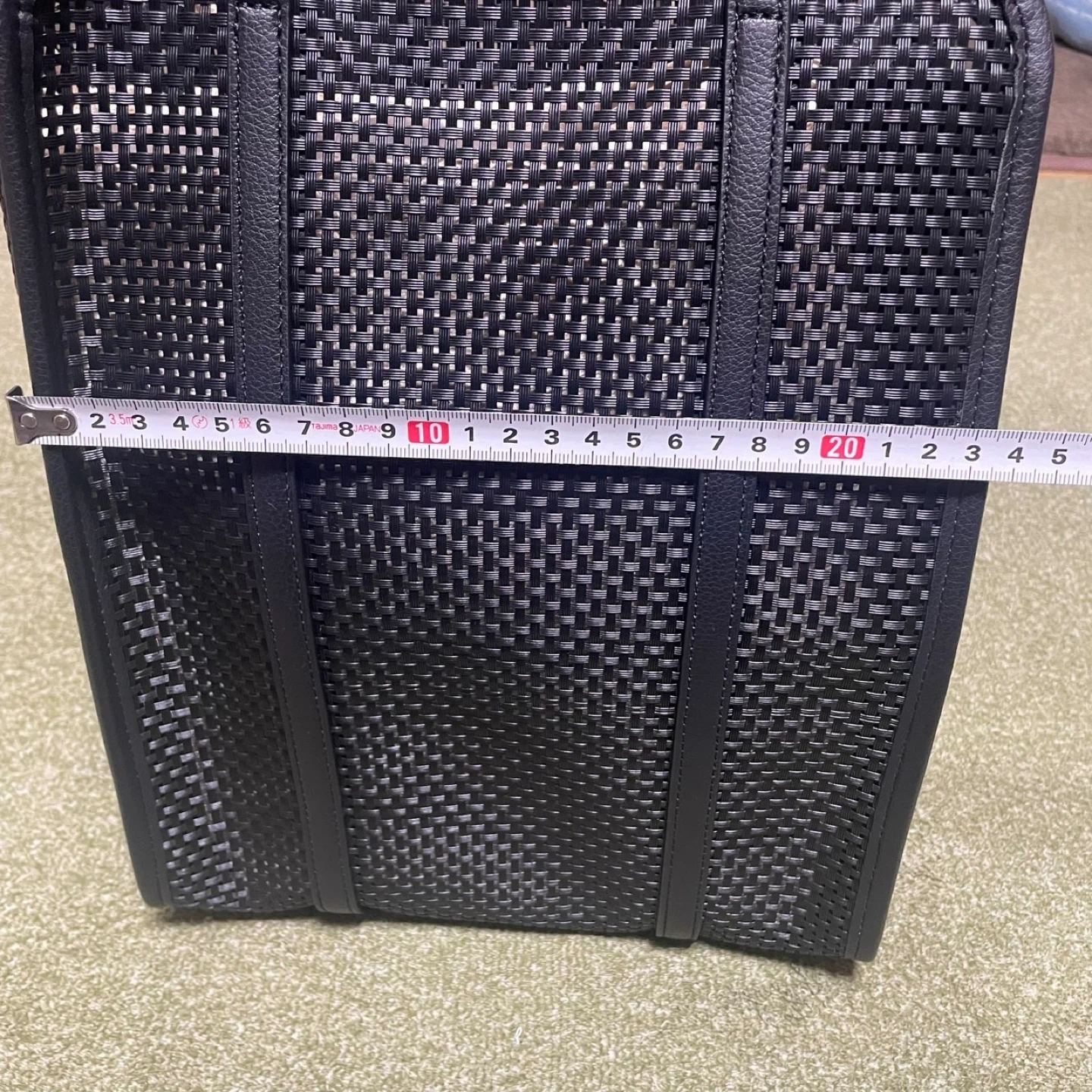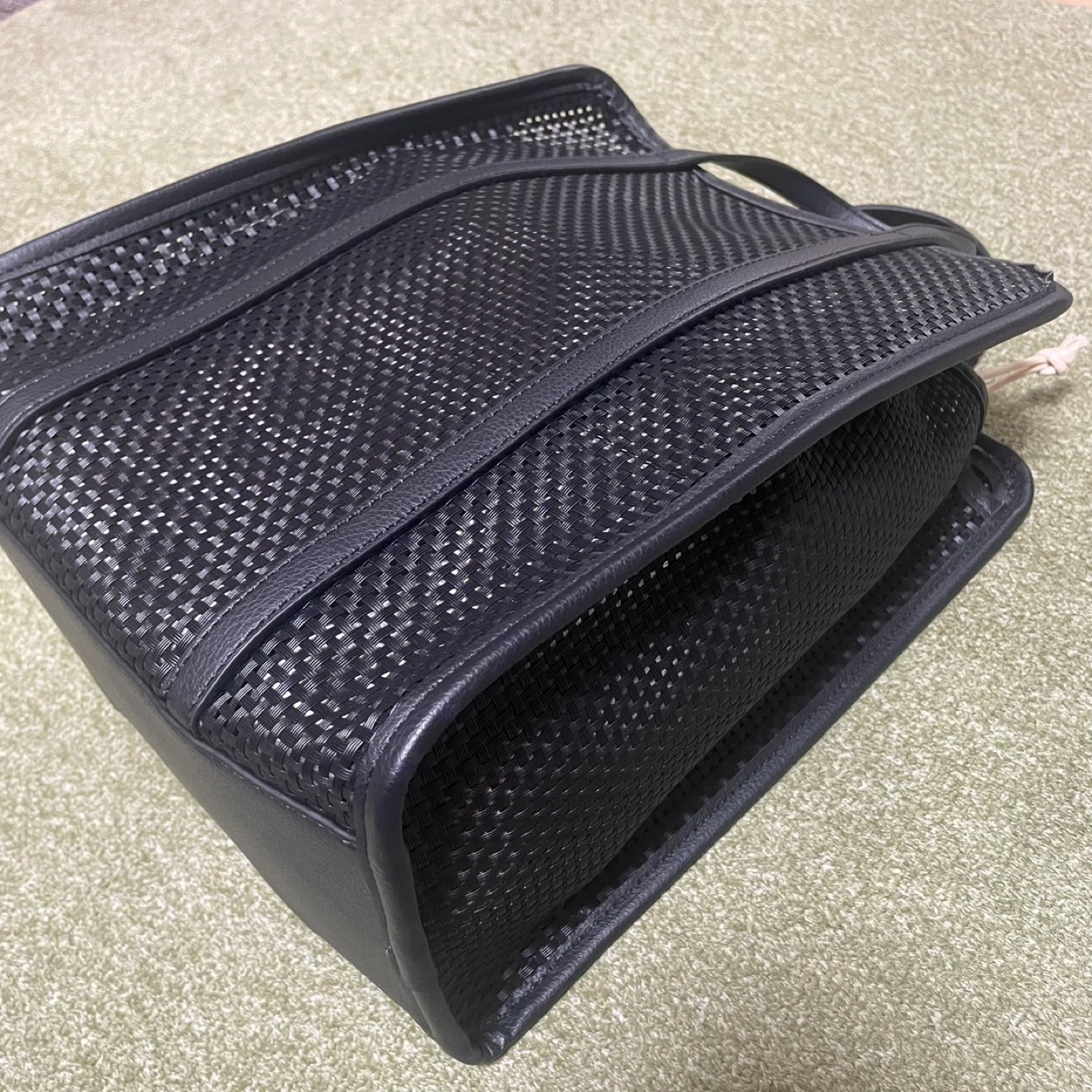 黒色のトートバッグです ・色:黒 ・サイズ:約23cm x 14.5cm x 30cm (写真6.7.8枚目参照) ・付属品:鞄に付属の巾着 ・一度のみ使用しました。 中古品であることご了承ください。 また、自宅保管、素人検品にご理解下さい。