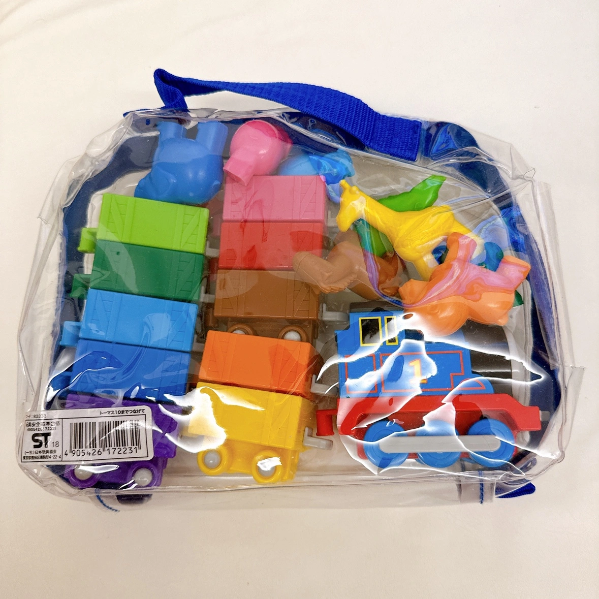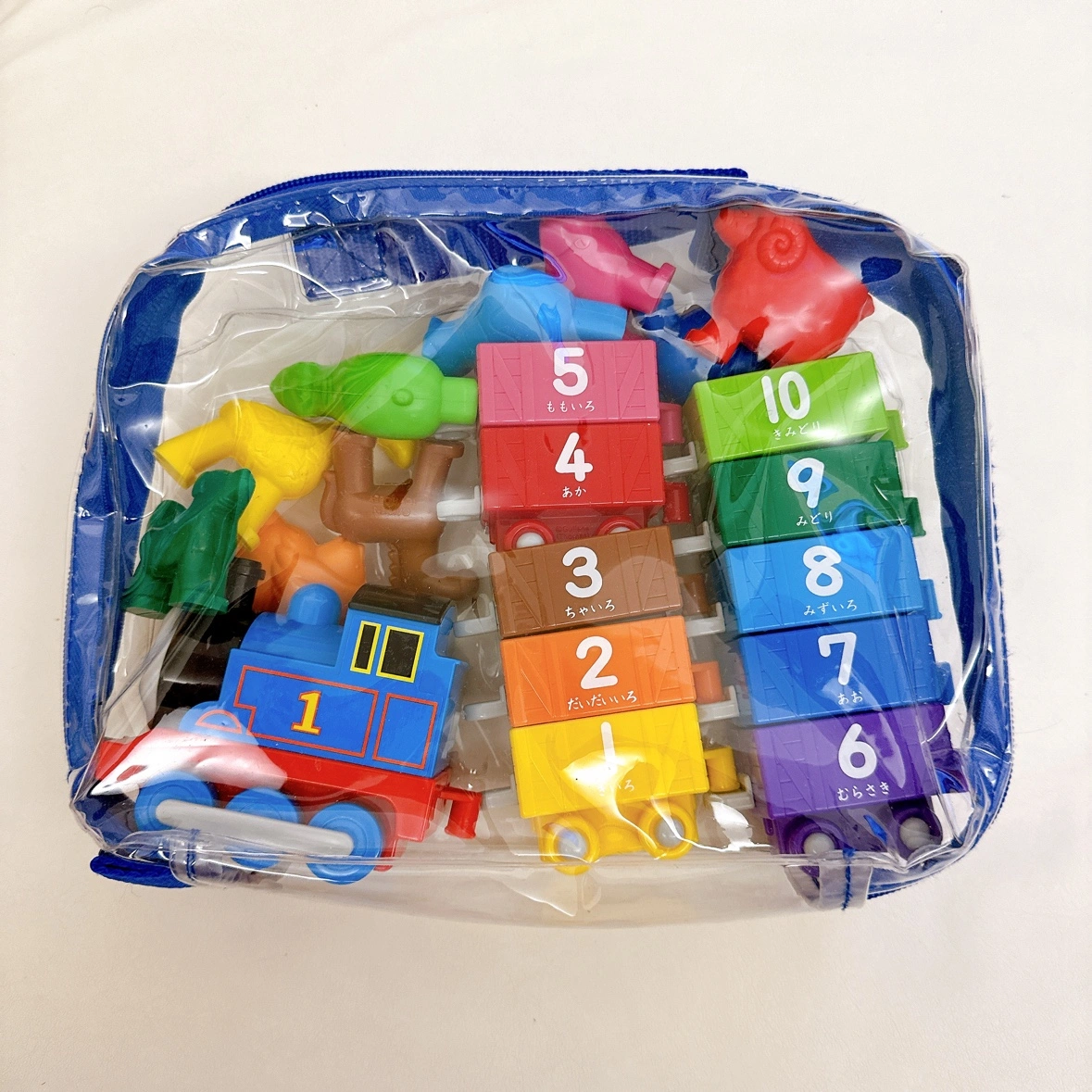 こちらトーマスの10までつなげて。 知育玩具です。 数字の列車を繋げたり、同じ色の動物を載せたりと、色や数字が覚えられます。 トーマスの前の繋げる部分が欠けてしまっていますが、後ろや他の列車に破損や汚れはありません。 よろしくお願いいたします。