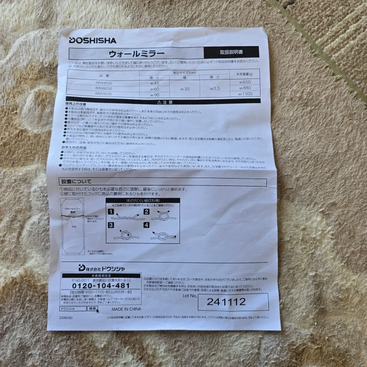 60 × 30 ほとんど使用していないため、新品に近いです。 裏の黒い部分は傷が付きやすい素材のようで、少し傷がついています。 【付属品】 取り付け用部品、取扱説明書