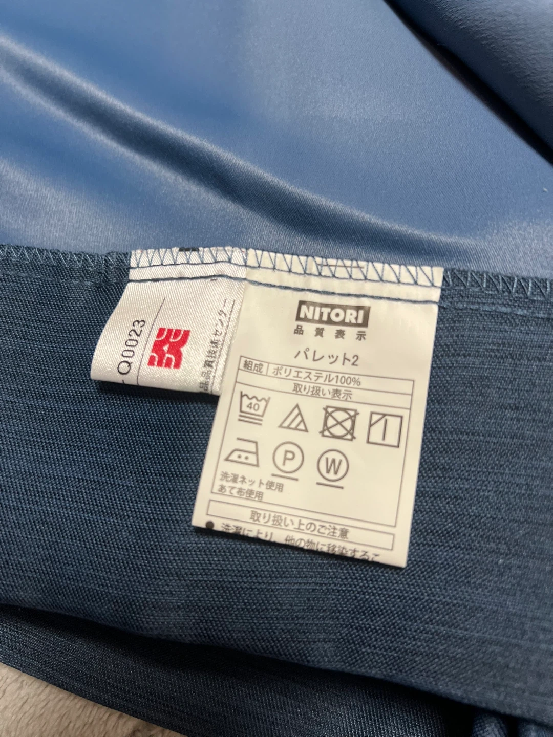 ニトリのカーテンです 小さい窓に付けていたので、1枚のみです。 ・色:ブルー ネイビー ・カーテン1枚 ・カーテンフックあり ・カーテンタッセルも付いています ・サイズ 幅105×高さ140 ※素人採寸なので、大体のサイズです。 2年ほど使用しています。 使用しなくなってからは畳んで保管していたので、畳んだ跡があります。 防炎です。 遮光等級もおそらく1級だったと思います。 ご不明点があればお気軽にご連絡ください