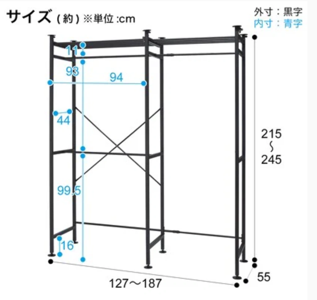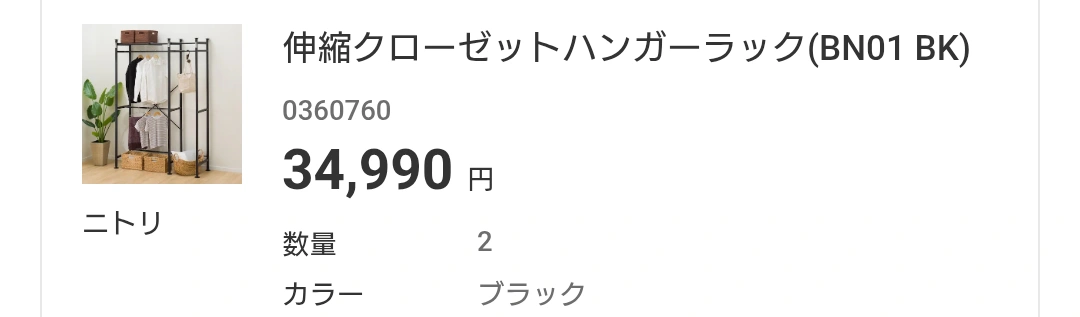ニトリ 伸縮クローゼットハンガーラック ブラック BN01 BK