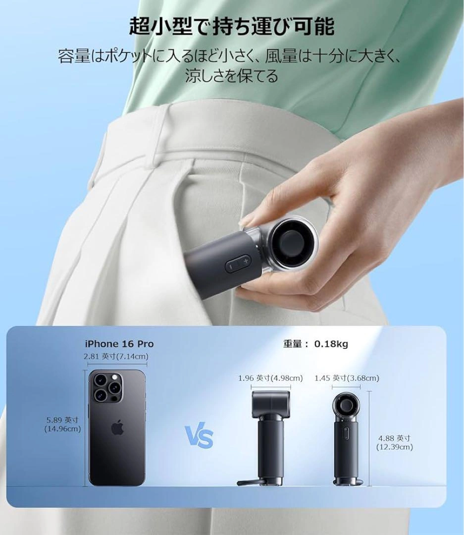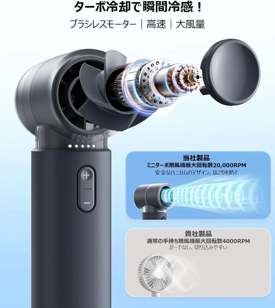 あたたかさ未使用品です(検品のため開封はしています)。 【5段階自由調節・5枚羽根】 5段階風量調節により、自然に近い優しい風からパワフルな超強風まで細かく切り替えることが可能です。強力なモーターを備えたタービン構造を採用し、吸い込んだ熱気を急速に圧縮して冷却し、冷風に変えて吹き出します。一般的な3枚羽根の手持ち扇風機と比べより穏やかな風量を送ることが可能です。冷却機能と併用するとさらに涼しく感じられます。 【3000mAh大容量】 Type-Cケーブルが付属。フル充電は約3時間で、最大10時間まで連続送風可能です。電量と風力表示があります。冷却プレートがわずか数秒で約10℃まで冷却されます。 【一台多役・持ち運びに便利】 コンパクトでさまざまなバッグやポケットに収納可能。裏面はハニカムデザインを採用し、ホコリの侵入をブロック。カラビナが付属しています。 【パッケージ内容】 扇風機本体×1 Type-Cケーブル×1 日本語取扱説明書×1 カラビナ×1 ご希望の方はお気軽にご連絡ください。