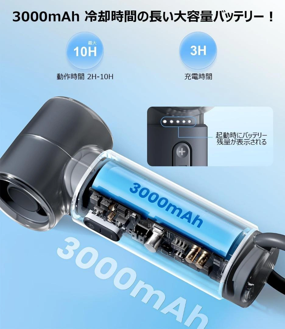 【2個セット】携帯扇風機 熱中症対策 3000mAh 大容量