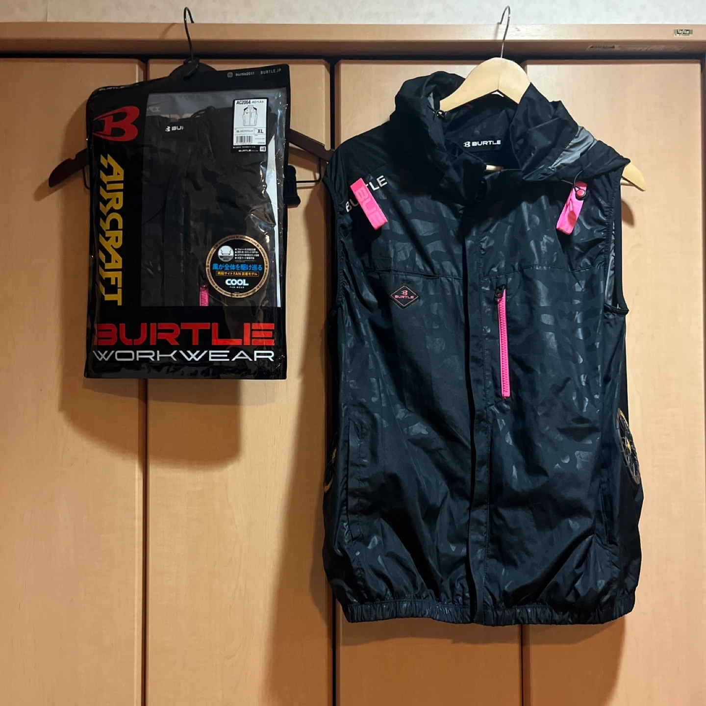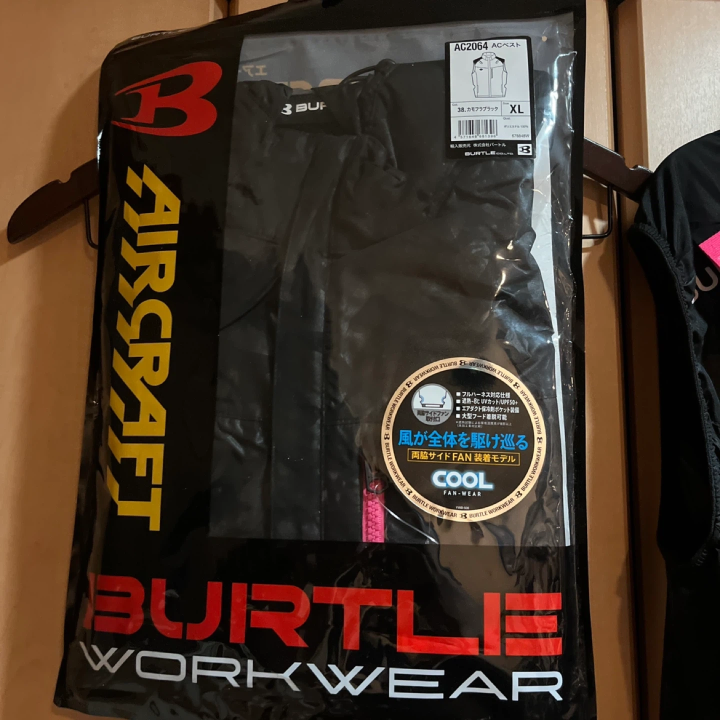 バートル BURTLE AIR SPAT 空調服 XL ベスト2点 フルセット 冷却機能を備えたBURTLEのブラック空調服、XLサイズ。 購入は8月の後半です。 ・ベスト2点(カモフラブラック) 1点新品 1点1時間程着ました。 ・24v AC09 バッテリー 1時間程度使用。 ・AC09-1 エアークラフト ファンユニット 1時間程使用。 系4点になります。 - ブランド: BURTLE - モデル名: AIR SPAT - サイズ: XL - 色: ブラック - 特徴: 冷却機能付き ご覧いただきありがとうございます。