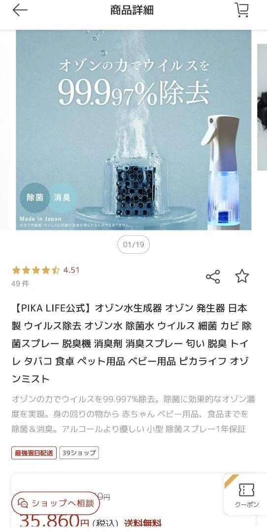 2025年9月購入。 未使用、未開封です。 - 商品名: PIKALIFE Ozone Mist - 用途: 除菌 消臭 - 製造国: 日本 写真1、2 現物(透明な厚手のビニールに、入っています) 写真3〜6 商品詳細 写真7 ご参考 ご希望の方はお気軽にご連絡ください。
