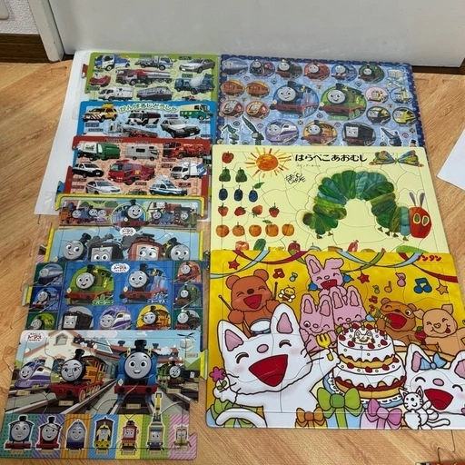 トーマス、はたらく乗り物、はらぺこあおむし、ノンタンのパズルセットです。 ピースは全て揃っています。 はらぺこあおむしだけ少し使用感があります。 他は新品同様です。 大森駅周辺、もしくは近隣での手渡し可能です。まずはお問合せください。