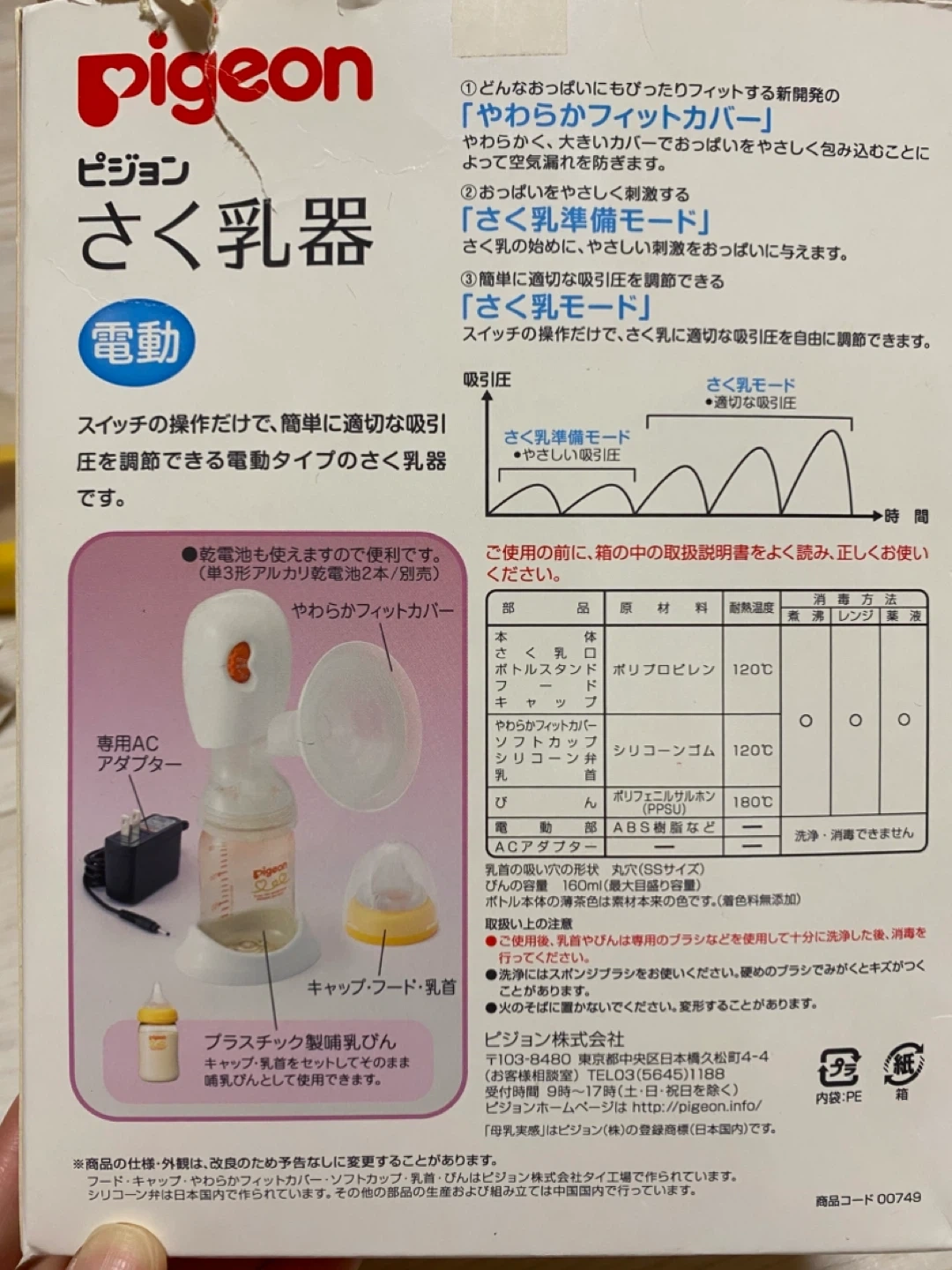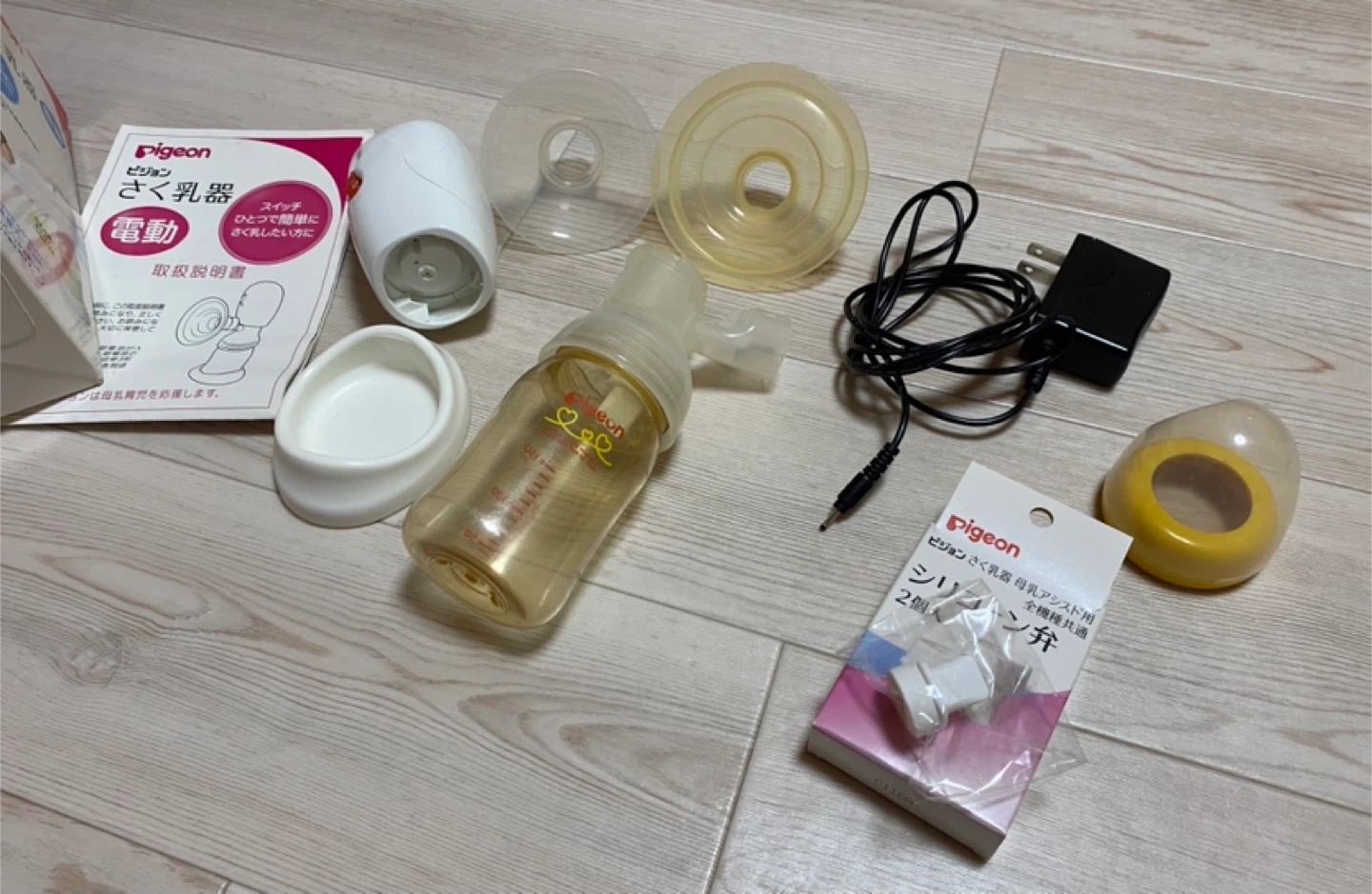 ピジョンの電動さく乳器 シリコンゴムのフィットカバーが劣化により変色していますが、問題なく使用できます。 乳首は衛生面を考慮し、つけていません。 その他付属品は全て揃っているのですぐにお使いいた だけます。 おまけでシリコン弁(新品1つ)おつけします(^^) 全て電子レンジで消毒できるので使い勝手がよかったです♪ 【情報】 ブランド:ピジョン 種類:さく乳器 (電動) 【状態】 使用感はありますが、目立つキズはありません 【付属品】 写真に写っているものが全てです 中古品であることご了承ください