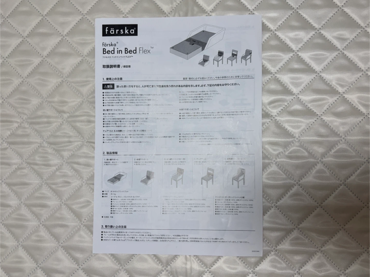 ファルスカ ベッドインベッド フレックス ・2024年春頃購入 ・商品状態:傾斜クッションのみ、1歳頃まで使用していた為、中のウレタンに変色あり(6枚目カバーあり、7・8枚目はカバーを外した状態)調べたところ、紫外線や空気中の水分による影響らしいので、その点ご了承ください ・他の部品は開封確認したのみで暗所にしまっておりましたので、ほぼ未使用。念の為洗える部品は洗濯済み ・説明書付き ・外装の箱は所々に折れ・欠け有り(2枚目参照) 中古品であるということをご理解の上、ご購入ください 平日は午前10時~12時頃 週末は午前中から17時頃 練馬駅、又はその付近での取引を希望です 他、応・要相談