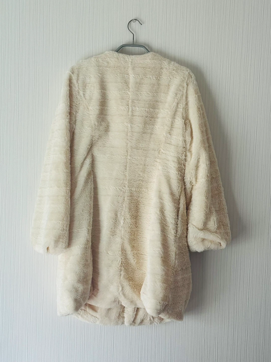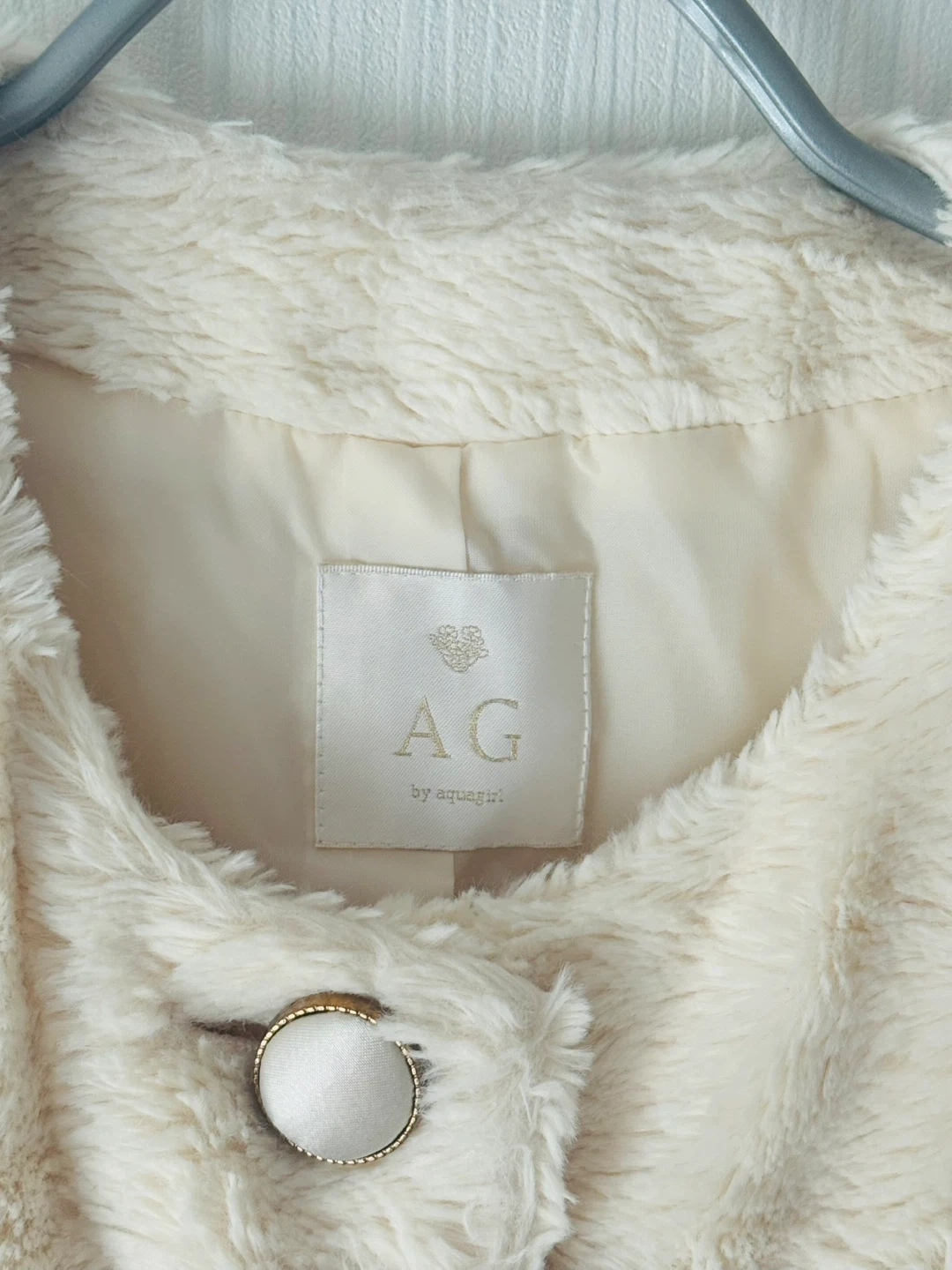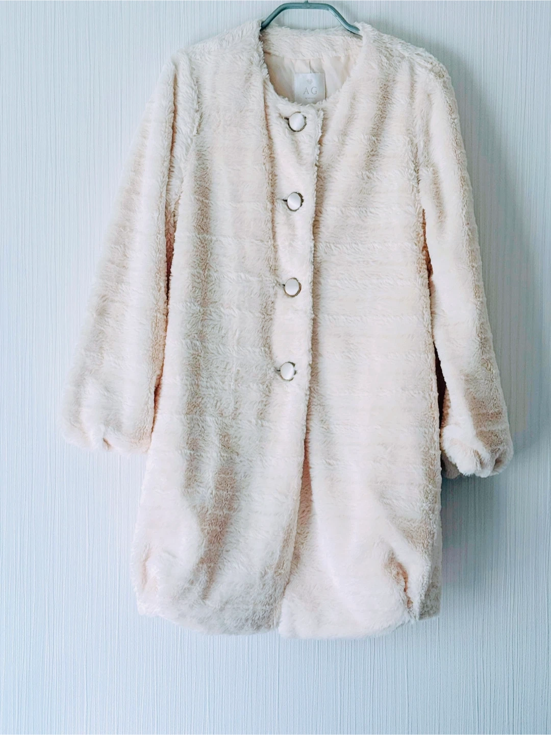 フェイクファーコート AG by aquagirl   白〜クリーム色のフェイクファーコートです。 着丈83センチ 肩幅38センチ まだまだキレイですが、服の系統が変わったので、断捨離のためお譲り致します。 目立つ傷や汚れは見当たりません。