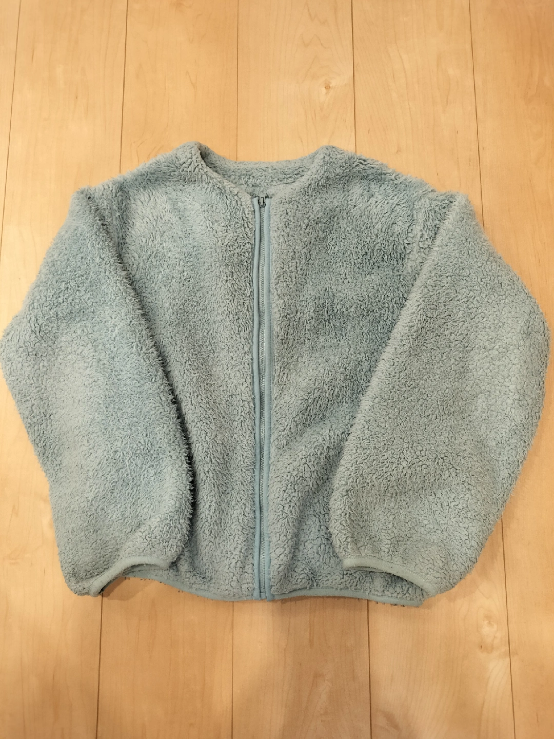 フリースのジャケットです 孫娘が着てました。小さくなったのでお譲りします。使用感ありますが気にならない方に。お使い頂けたら嬉しいです。 ・色:水色 ・状態:使用感有り 中古品であることご了承ください