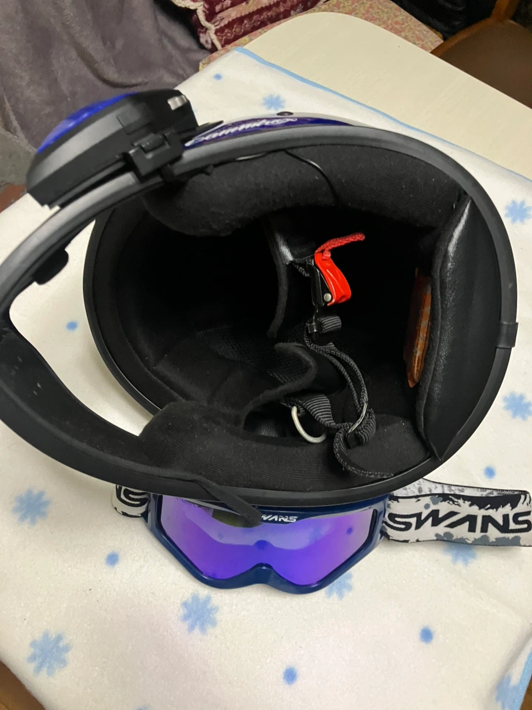 スワンズのヘルメットとゴーグルのセットです 【情報】 Mサイズ 色:青、白 【状態】 使用感少なめ 安全規格はPS CとSGを取得しています。 ヘルメットを複数所有していますので、購入して数年経ちますが、5回か6回位しか使っていません。 目立った汚れや傷は見当たりません。 自宅近辺まで取りに来てくださる方限定でお願いいたします。 事前にご連絡をいただければ、曜日を問わず11時から18時の間お引き渡しができます。