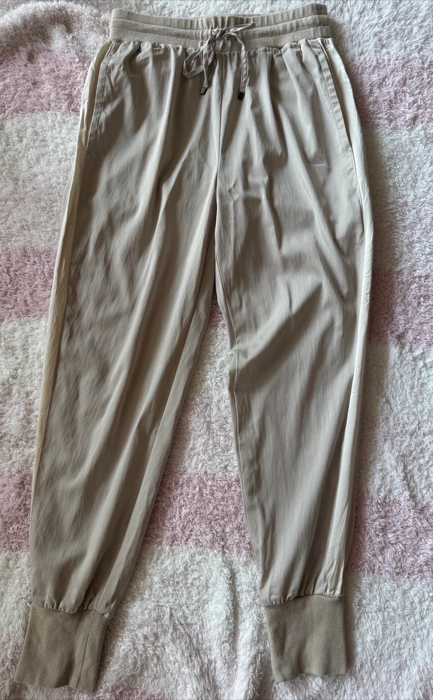 ・カラー:グレージュ ・サイズ:36 - 素材: キュプラ71%、ナイロン24%、 ポリウレタン5% - 製造国: 日本 軽やかな素材を使用した、快適なジョガーパンツ。 ご覧いただきありがとうございます。 裏地なしで、暑い時期に軽く履いていただけます。 人気のサイドライン! 色は、グレージュ。 汚れなどは見当たりませんが、中古品ですので、ご理解ある方のご購入をお願いいたします。 日時によってはファミリーマート以外でもお渡し可能ですので、ご相談ください。