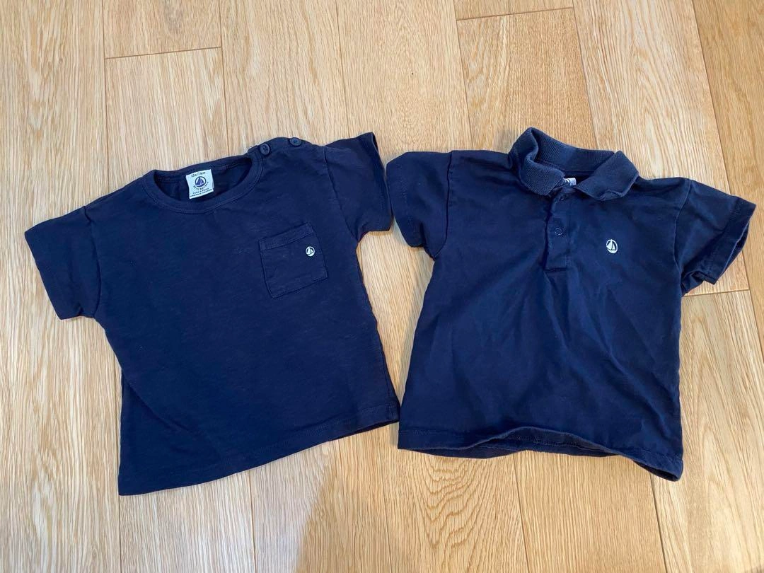 プチバトーの紺色のポロシャツ、Tシャツのセットです。 お祝いでいただき、記念撮影にそれぞれ短時間1度のみ着用し、その後ホームクリーニングし保管しておりました。 我が家にアイロンがないため、ポロシャツ襟が畳ジワがついておりますが、洗い直しいただければまた綺麗に戻るかと思います^^ サイズはいずれも74センチです^^ あくまでも自宅保管の中古品の旨ご了承のうえ、商品状態は写真ご確認うえご購入ください^^ 他にもプチバトーのトレーナーセットアップなど出品しております。 合わせてお値下げも可能ですので、ぜひご覧ください(^^)