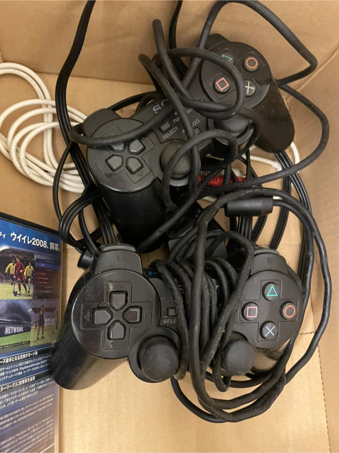 プレイステーション2 本体とコントローラー、ゲームソフトのセットです 【情報】 ブランド:ソニー 商品:プレイステーション2 【状態】 本体に多少のキズ、汚れあり コントローラーに使用感あり ゲームソフトは複数あり、状態は様々です 【付属品】 コントローラー複数 ゲームソフト複数 中古品であることご了承ください