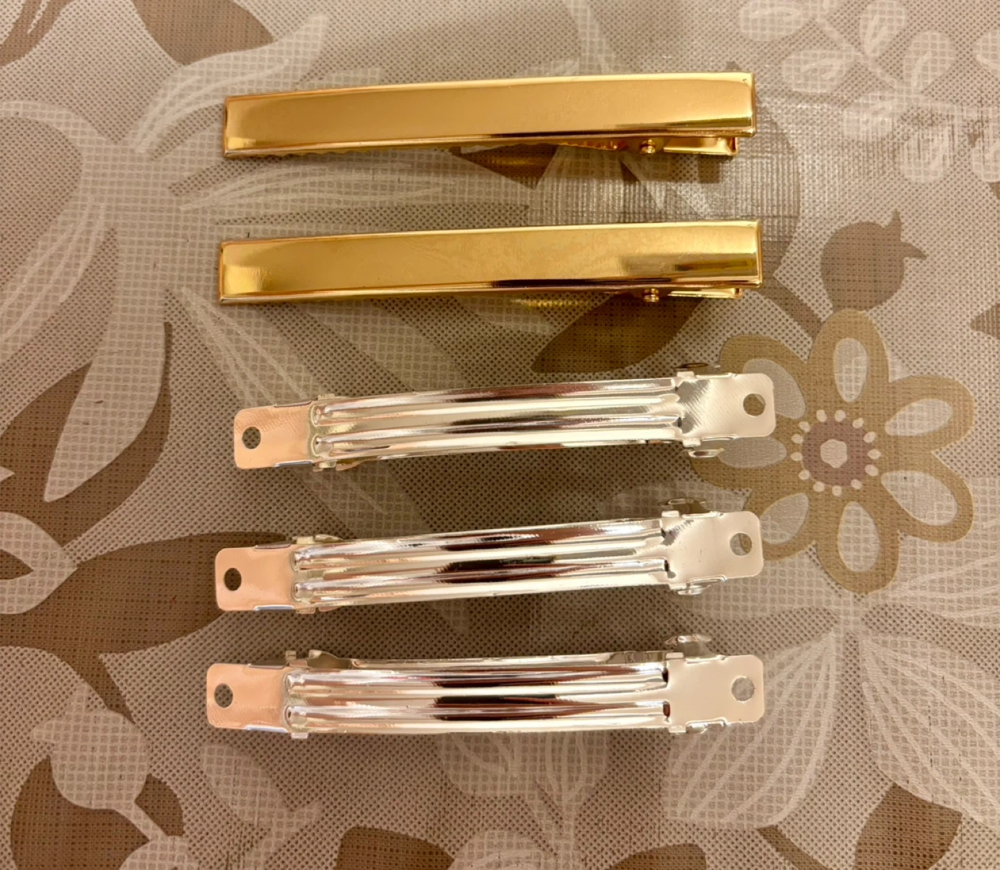 アクセサリー作りに使用するバレッタ、クリップのセットです ・ヘアクリップゴールド 2個 ・バレッタシルバー 3個 未使用品ですが自宅保管であることご了承ください 受け渡し場所は新宿、品川、羽田辺りでも可能です
