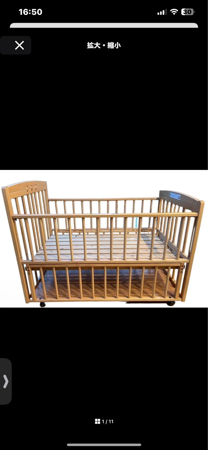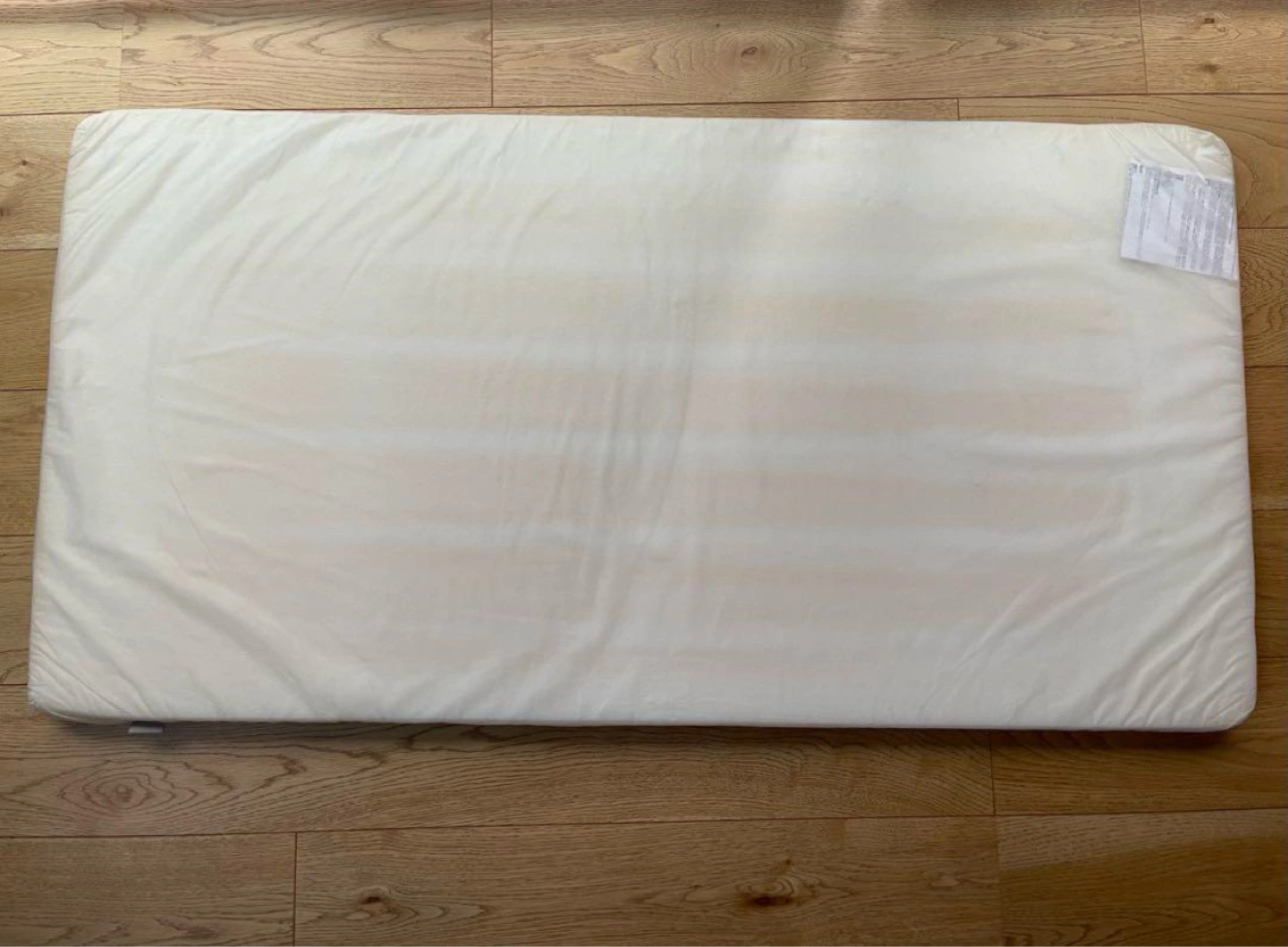 【ベビーベット】SAWA BABY ティアラDX 120×70 【ベビーマットレス】IKEA PLUTTIG プルッティグ 60×120×5cm 【マットレスシーツ】IKEA LENAST レーナスト 60×120cm 【ベットパンパー】IKEA LEN レーン 60×120cm 説明書あり。 別売り不可。 友人から譲ってもらったので購入時期はわかりません。 夜は別の布団に寝ていたので、娘が昼間に数回使っていました。 ベビーマット、シーツ、ベットバンパーは2023年4月に全てIKEAで購入、約1年使いました。 ベビーマットは裏面にベビーベットのとこ板の跡が映っていて、表面に一箇所跡がついていますが、シーツをかけるのでまだまだ使用していただけるかと思います。 ベビーベットのは数箇所汚れ等ありますが、ベビーマット、シーツ、ベットバンパーがあるので特に気にならずお使いいただけると思います。 他、見落としがあるかもしれませんが、使用する分には問題ないです。 引き渡し前に洗える物は洗濯をし、簡易消毒をしてからお渡しします。 ※解体してのお渡しになりますので、ご自身で組み立てをお願いします