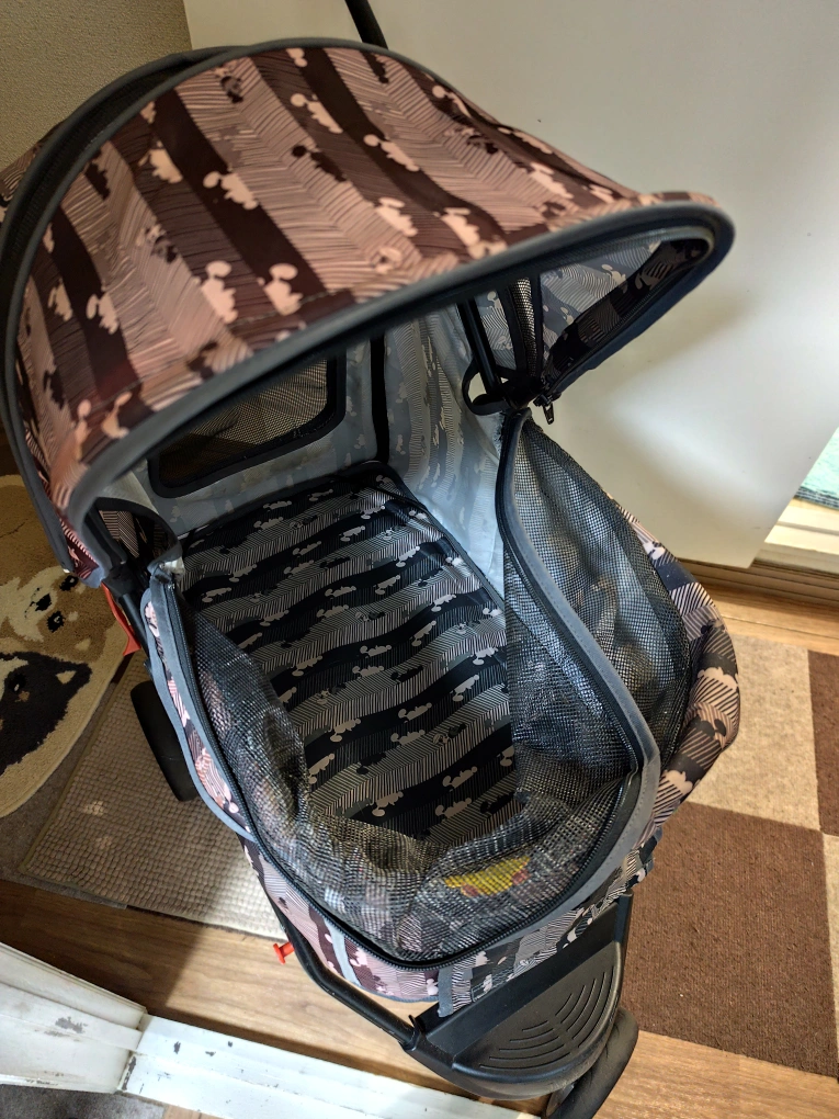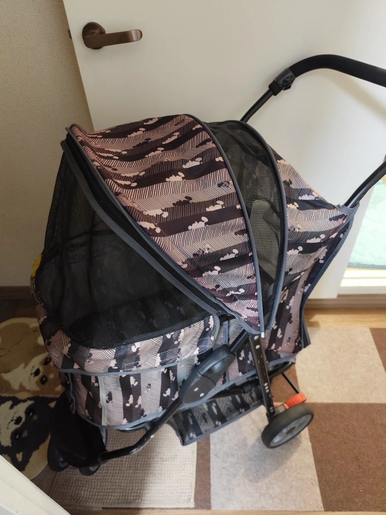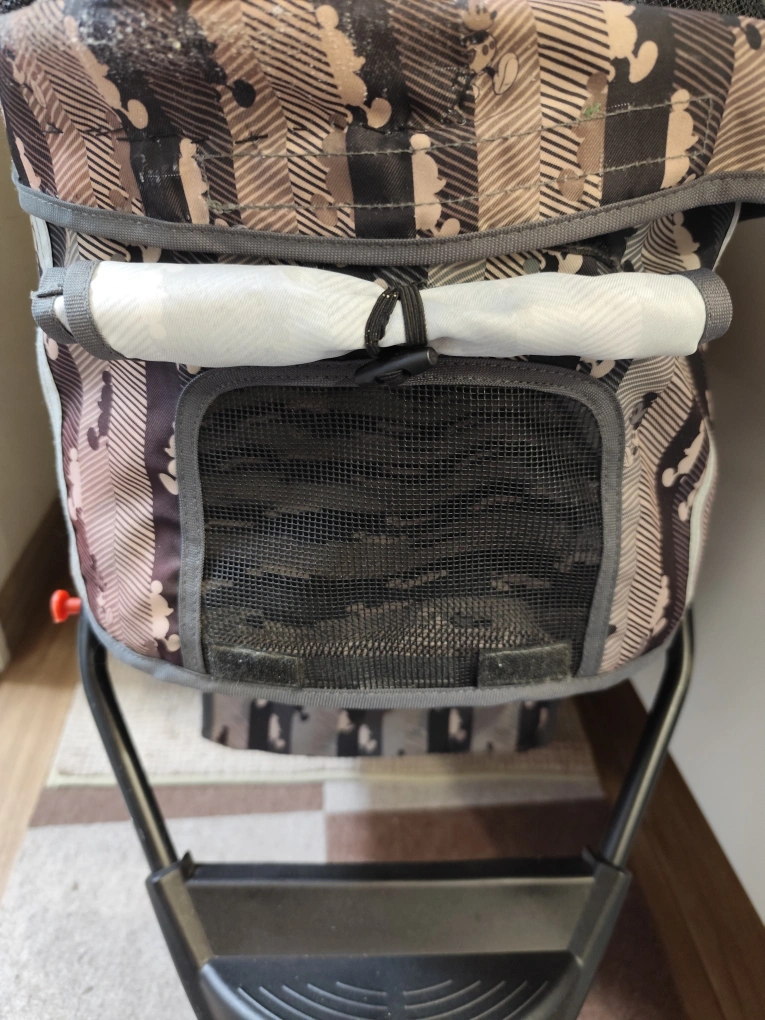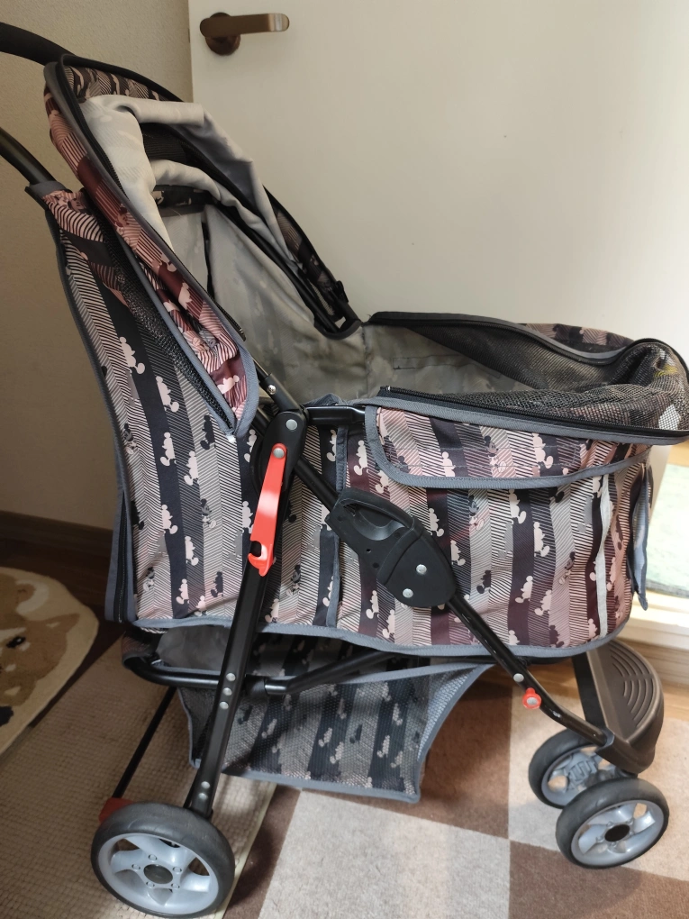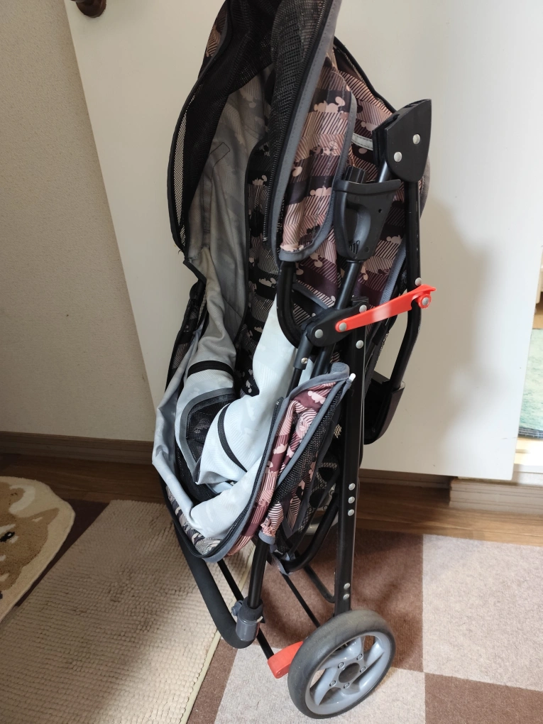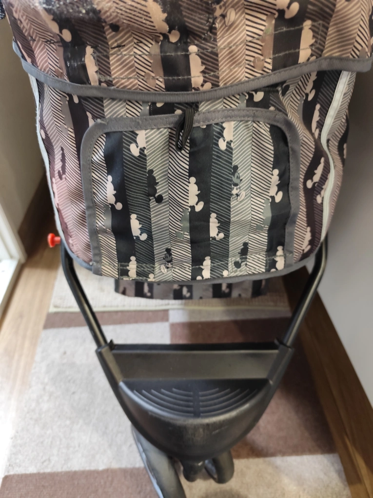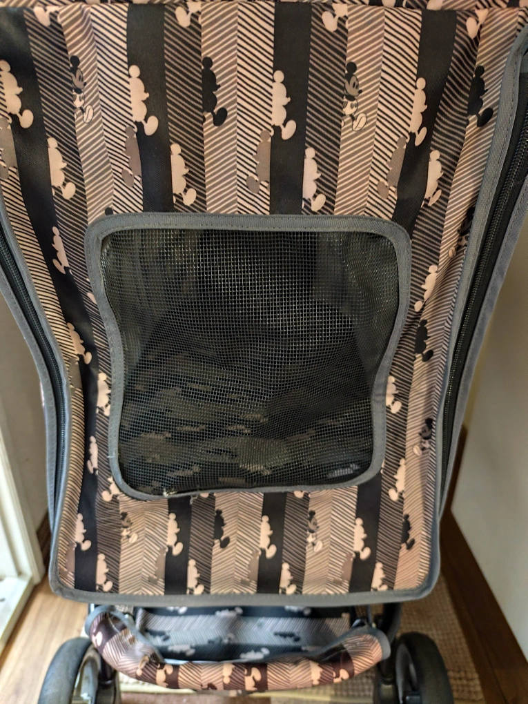 ミッキー柄のペットカートです ・色:黒、グレー、黒 ・全体的にミッキーマウスの柄入り 取りに来てくれる方、愛犬に使用してくださる方、希望です。 小型犬2頭、もしくは中型犬用のミッキーマウスのペット用カートです。 ネット部分が大きいので、移動中もペットの様子を見ることが出来ます。 前にもミッキーマウス柄の布が付いている窓があり、そこをクルクルとゴムで留められる用になっており、ペットが前から外を見ることも出来ます。 カートの中にはしっかりした板とミッキーマウス柄のシートも付いております。 リードを止める事ができる金具も付いてます。 3輪仕様になっていて小回りもきき、動きやすいです。 中古である為、また6枚目の画像にひよこのアップリケがありますが、うちの子がネットを少しガジガジしてしまった部分があります。 全体として使用には全く問題ありません。 折りたたみも可能です。 質問等あればお気軽にコメント頂ければ幸いです。 3輪のバギーです。 小回りが利くのでとても使いやすかったです。 うちの子が増え、乗らなくなったのでこちらに投稿しました。 お気軽にお問い合わせ下さい。 中古品であることご了承ください