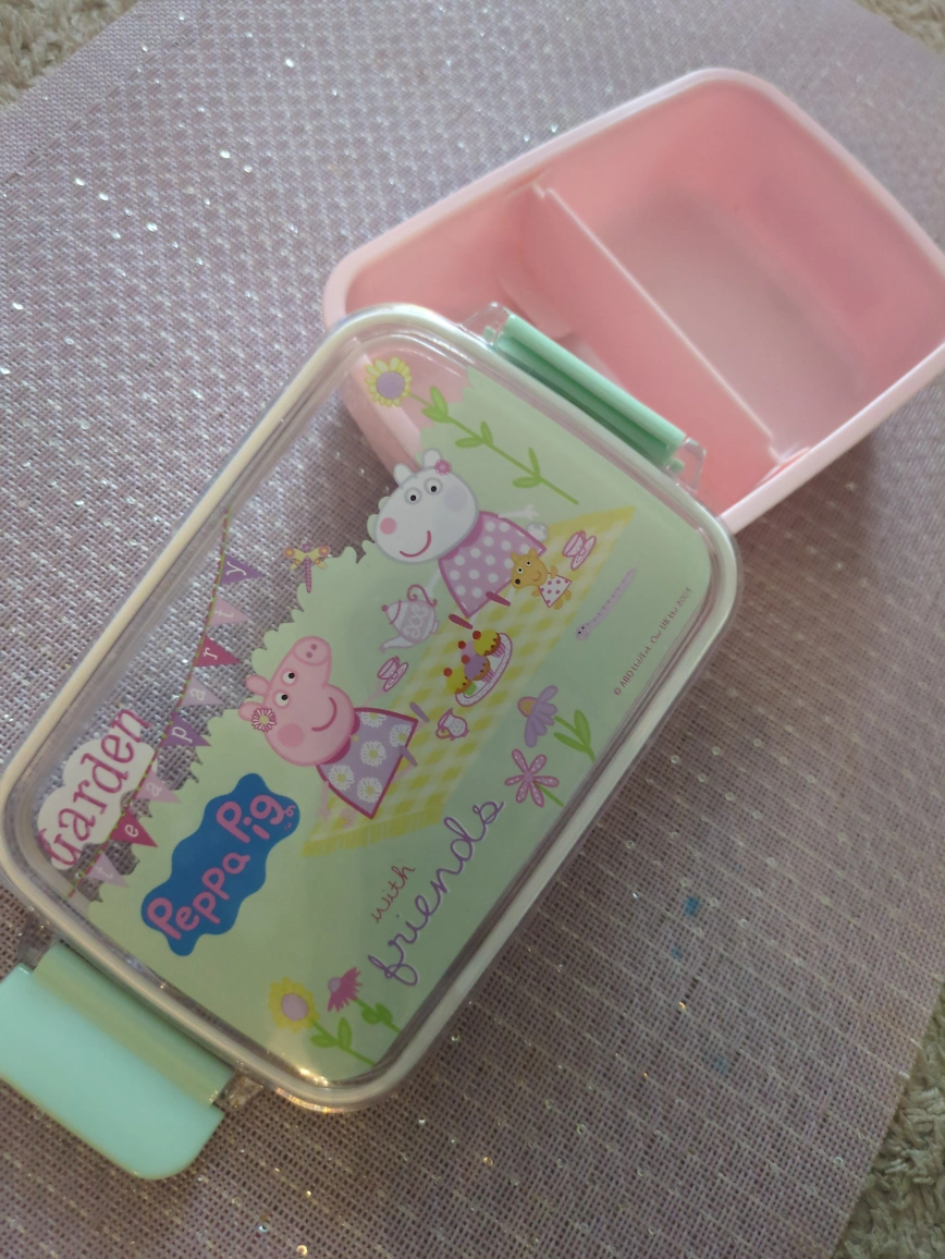 ペッパピッグのランチボックスです。 ほぼ未使用です。目立つダメージなど見当たりませんが、中古品であることをご理解くださいませ。 柄:ペッパピッグと仲間たち ・色:ピンク、グリーン ・状態:使用感少なめ 中古品であることご了承ください