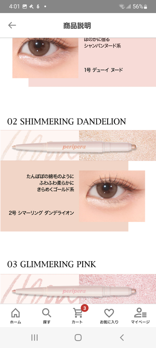 商品名:シュガー トゥインクル デュオ アイ スティック 2号 内容量:ライナー 0.23g / シマー 0.55g 区分:韓国製/化粧品 メーカー:Peripera(ペリペラ) 箱なし Peripera SUGER TWINKLE DUO EYE STICK ペリペラ シュガー トゥインクル デュオ アイ スティック ぷ っくり うるうる 涙袋 を 演出 スキントーン で 自然 に 馴染 む ベルベット 光 ブライトナー と、 クリア で なめらか 、 透明感 のある シマーパール で 魅力的 な 涙袋 を 演出 に。 デューイヌード 、 シマーリング ダンデライオン 、 グリマリング ピンク の 3色 展開 。
