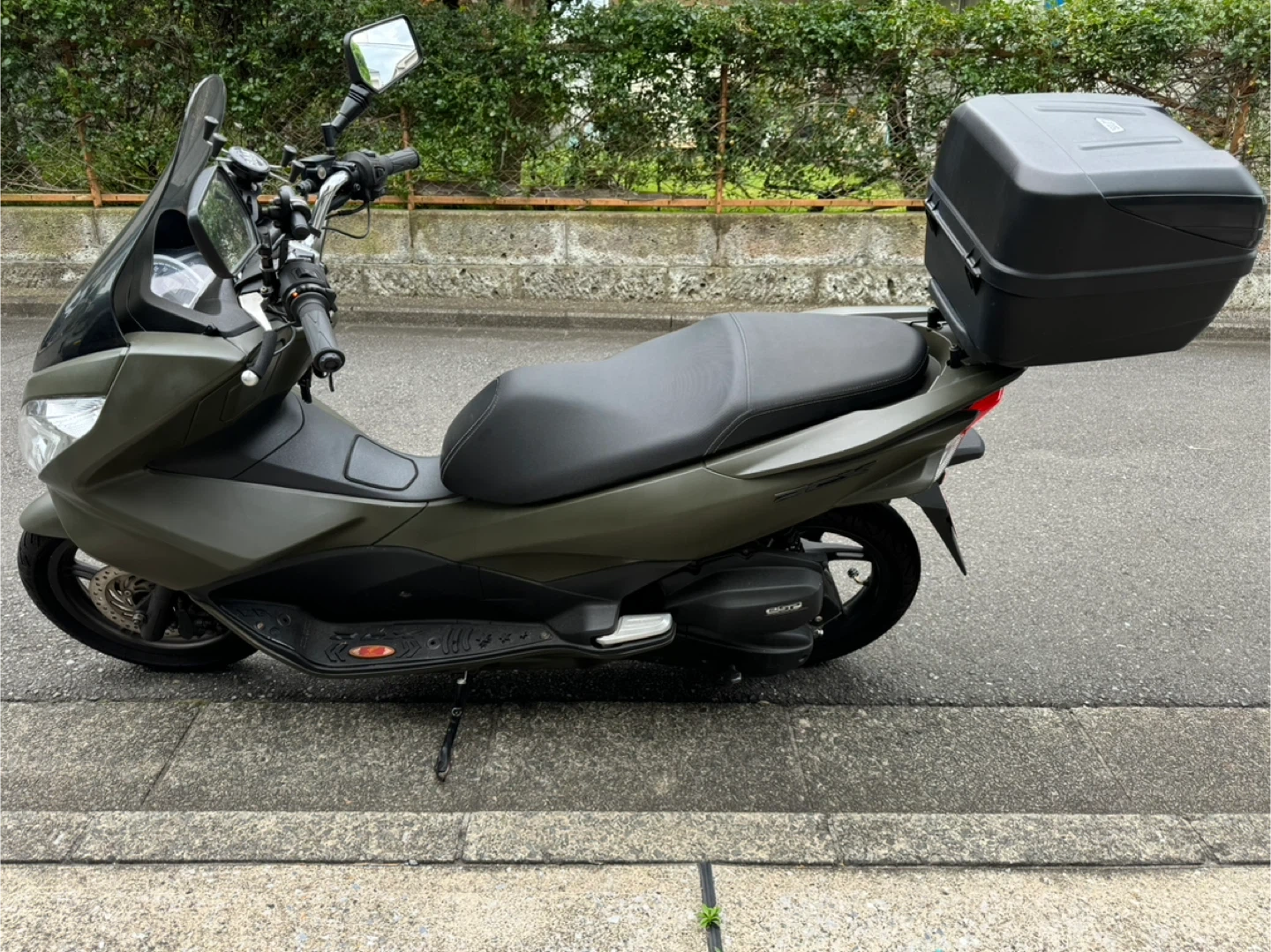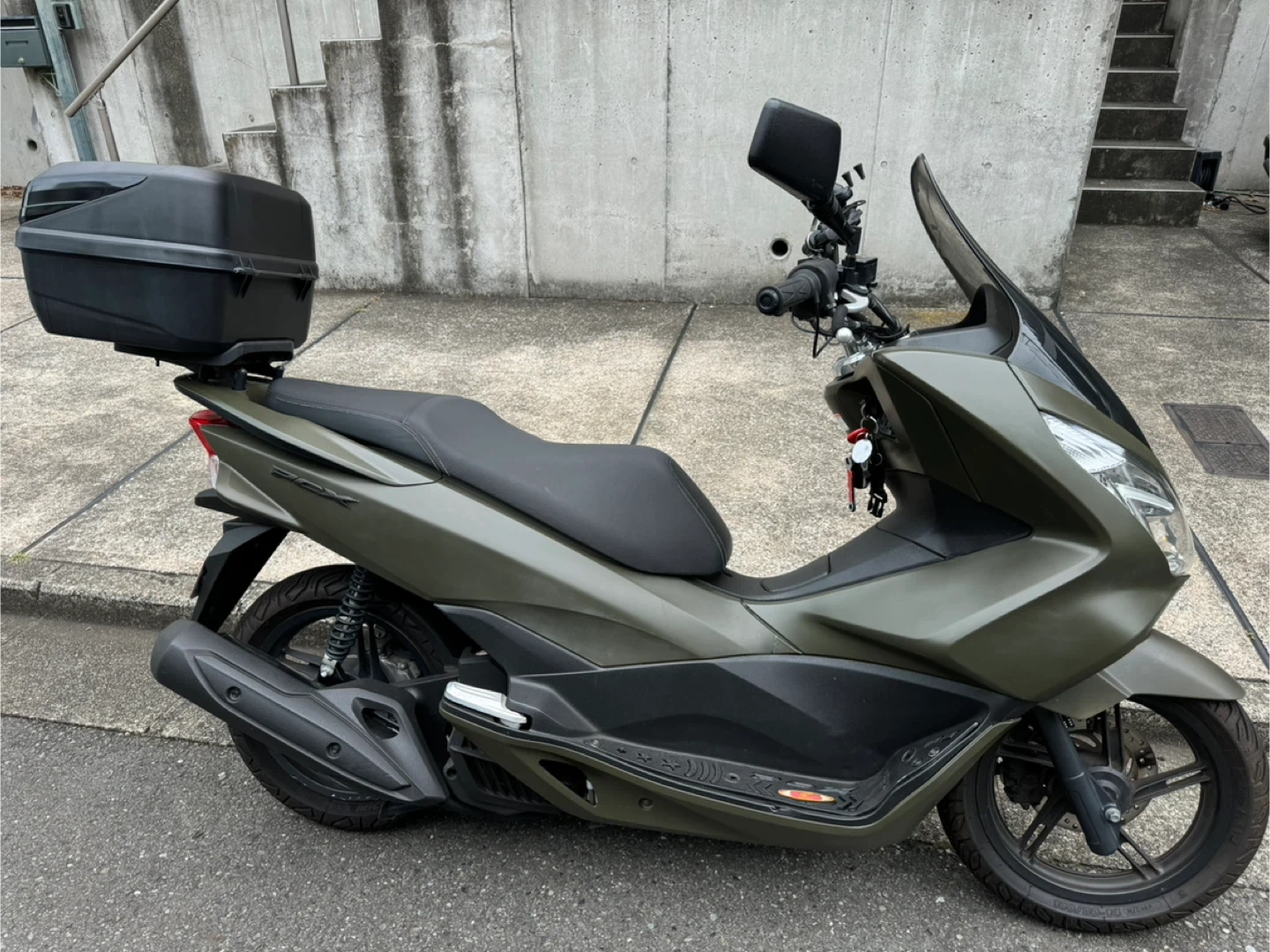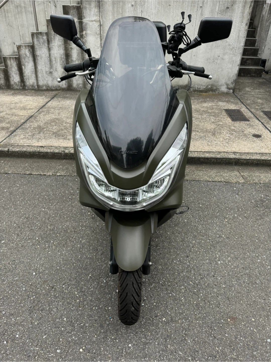 ホンダのPCX 原付二種バイクです。 【情報】 ブランド:ホンダ 車種:PCX 色:オリーブグリーン系 走行距離:43289km 【状態】 pcx 125 jf56 純正セキュリティ付 自賠責令和11/1まで カスタム ウレタン塗装にて国防色 ステップ、マフラーカバー、フェンダー等各部チッピング塗装 ナポレオン風ミラー 台湾ホンダロングスクリーン RAMスマホマウント 社外ステップカバー エンデュランスグリップヒーターSP 前ミシュランシティグリップ2 後ミシュランシティグリップ2太足化 前100/90/14 後120/70/14(太足化) ベルト交換(純正) ドクタープーリー17g エアクリーナー交換 クラッチ量点検清掃 リアブレーキ交換 ベアリング異音無し オイル交換 カスタムキー(シャッタキーok) デイトナシートインポケット 駆動系とタイヤ交換等メンテしてからまだ80キロほどしか走っていないのでメンテ代はしばらくかからないで済むと思います。 大人仕様としてカスタムし日常の足にしていたのですが車通勤になったので出品します。 右側カウル割小、多少傷等はありますがまだまだ元気に走ると思います。 ジビのボックスは取り外しますがもし必要でしたらステー込み+1万円です。 自賠責は別車に載せ替える予定です。 条件が合えば乗って帰っていただくことも可能です。 上記の話は現車確認の時に応相談で。 ご希望でしたら今後クラッチ交換時に取り付け予定だった未使用デイトナのセンタースプリングもお付けします。 近所の買い物にて距離少し増えます。