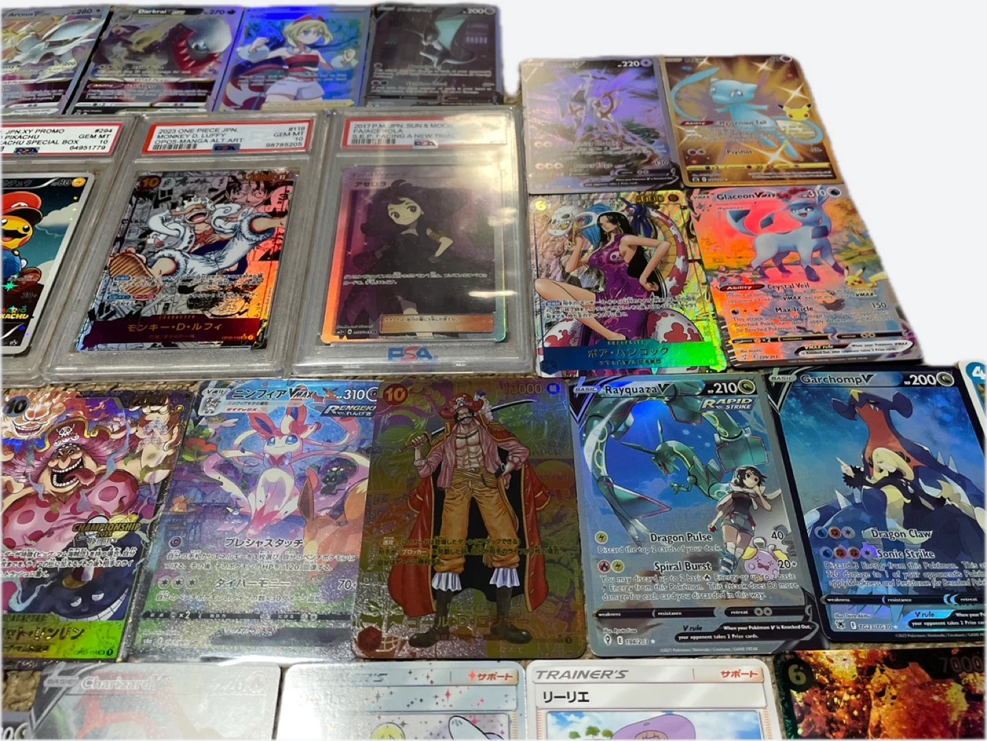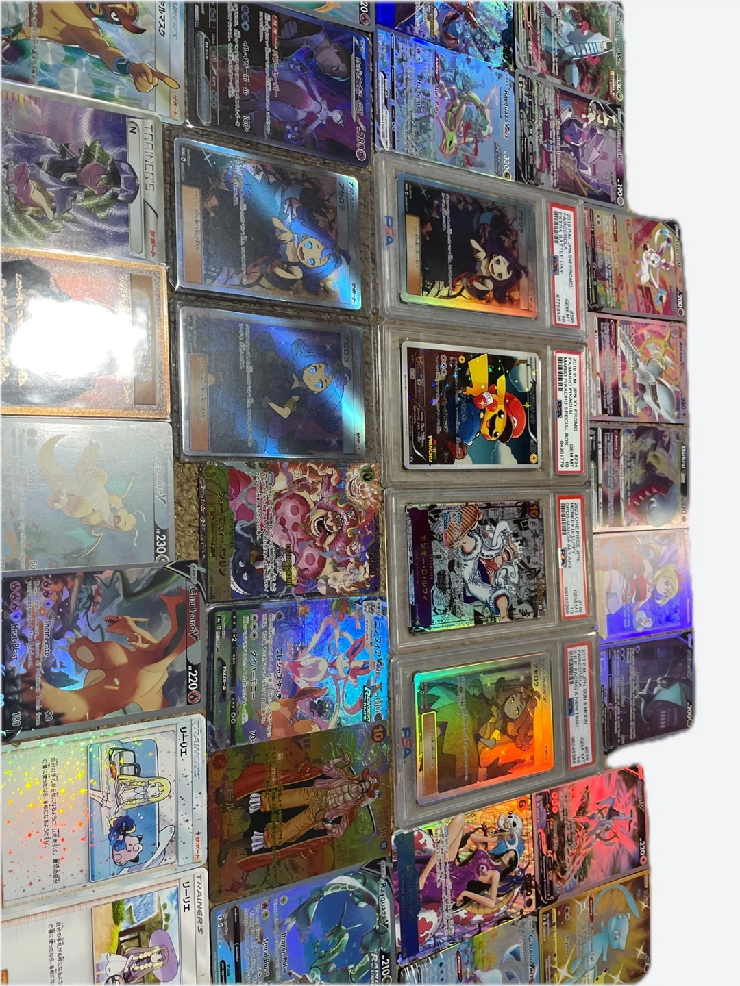 ポケモン、ワンピースカードのまとめ売りです。 SAR.SR.PSA10.ノーマル等色々あります。 全てで81枚あります。 ・様々な種類のカードがあります。 ・一部PSA鑑定済みのカードが含まれます。 ・全体的にきれいな状態です。 こちらの商品は全て鑑賞用、展示用なのでご注意ください。 カードショップ等での買取はできません。 ご理解頂いた方のみご購入く ださい。 またご購入後の返品返金はお受けできません。 ご了承ください。 ご自身での鑑賞や展示等にご利用ください。 中古品であることをご了承ください。 ご覧いただきありがとうございます。