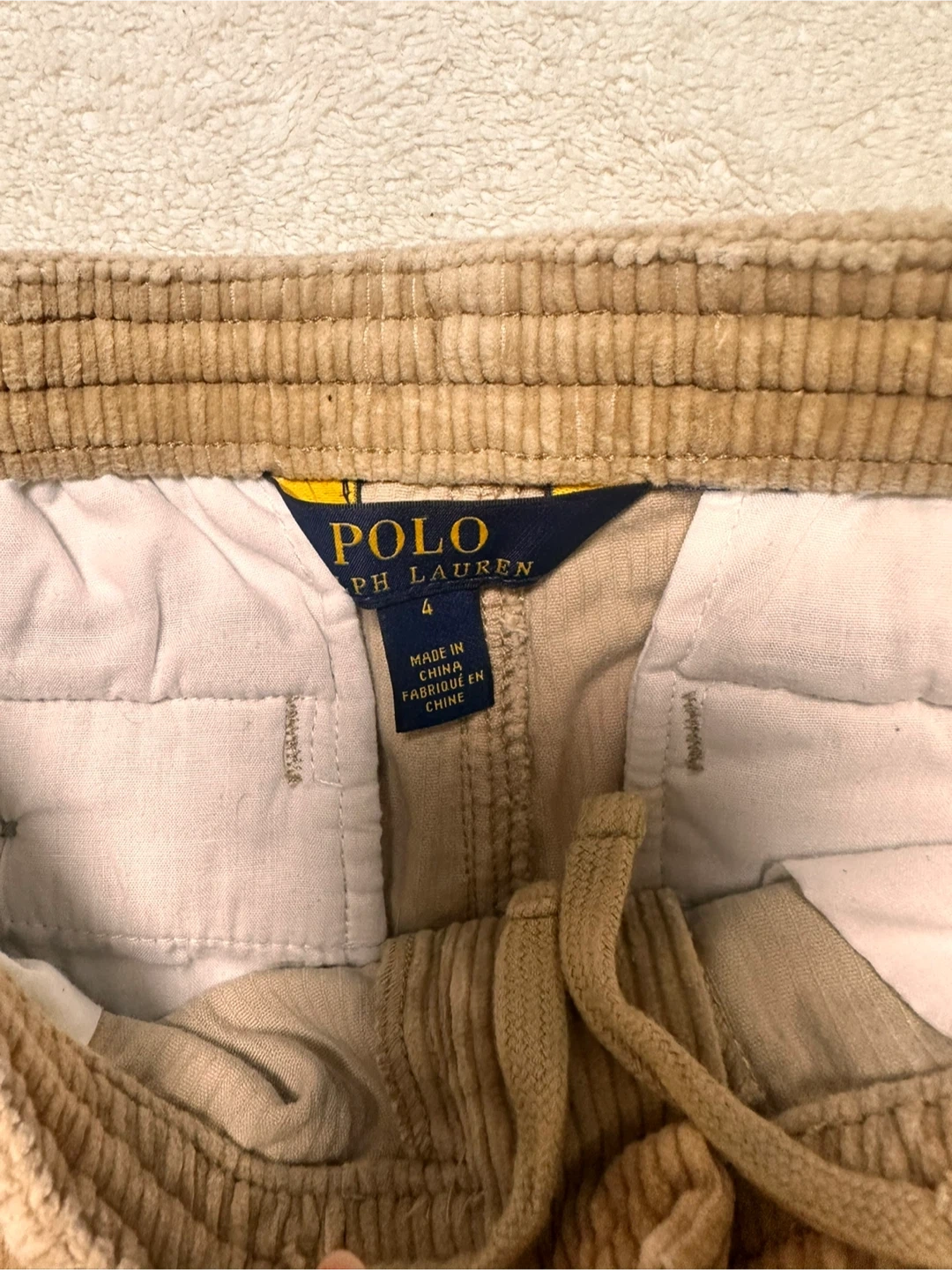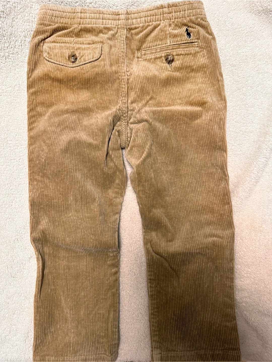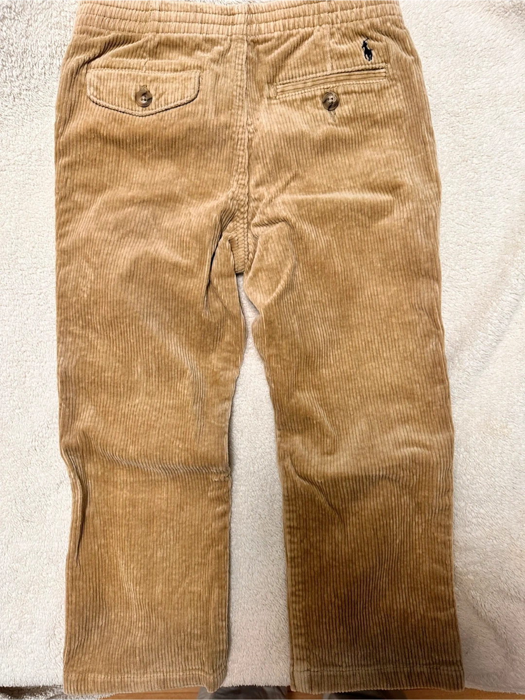 ポロラルフローレンのコーデュロイパンツです。 ウエスト部分は、紐でも調節できます。 数回着用しましたが、美品です。 ・ブランド:ポロラルフローレン ・カラー:ベージュ ・サイズ:4 中古品であることご了承ください