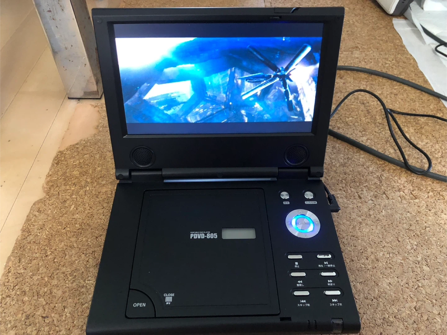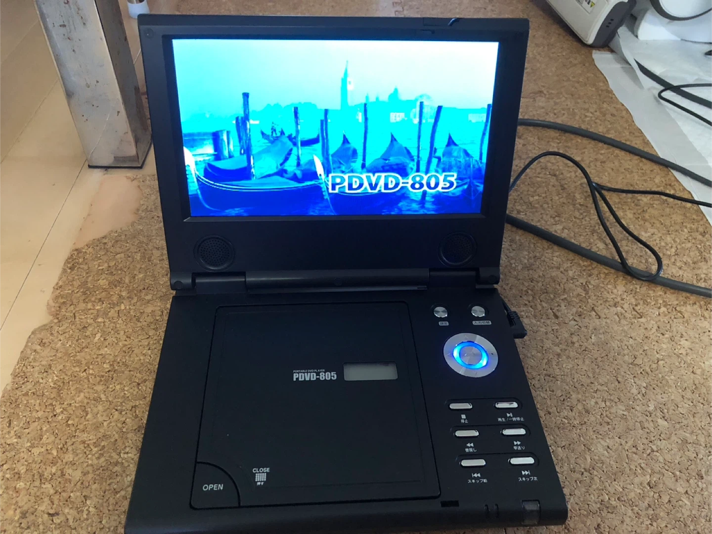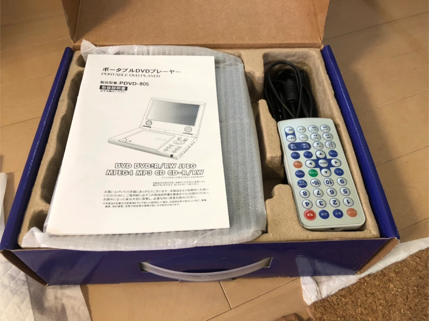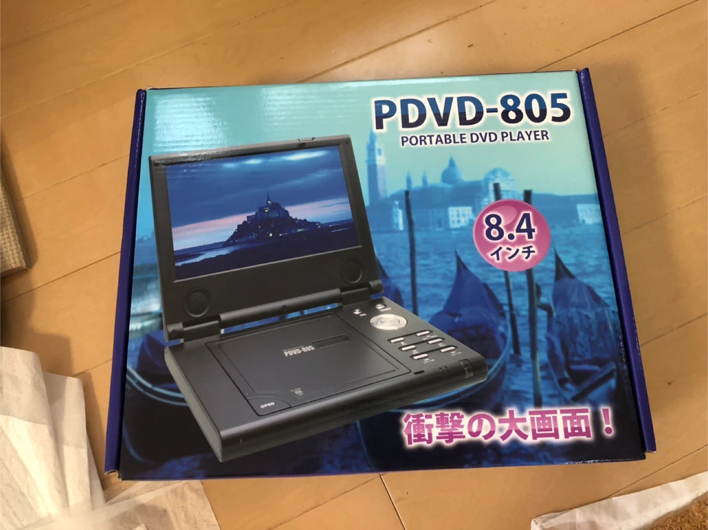 ポータブルDVDプレイヤーです 【情報】 型番:PDVD-805 サイズ:8.4インチ 【状態】 使用感少なめ 【付属品】 取扱説明書、リモコン リモコンでの操作が電池を換えても出来ませんでした。 本体での操作は問題ありません。 自宅での引渡しになります。