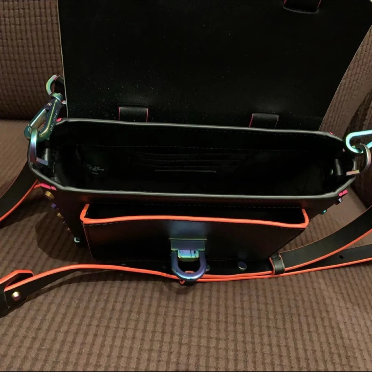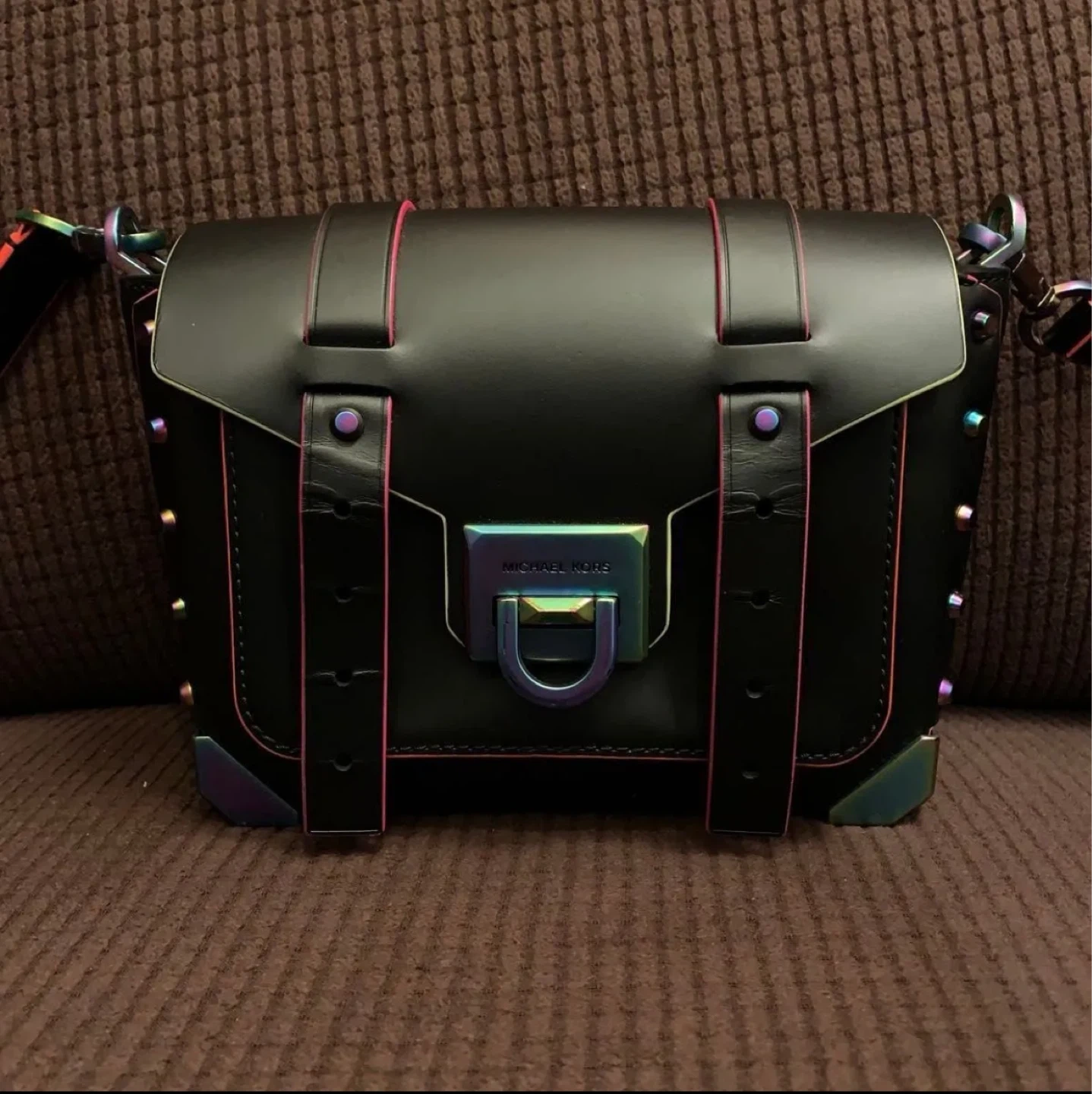 マイケルコース マンハッタン MICHEAL KORS Manhattan ショルダーバッグ クロスボディバッグ スモールメッセンジャーバッグ 夏モデル 完売品 ブラック×ネオンカラー(マルチカラー) サイズ(約) 横(上部)21cm、(下部)18cm 縦13.5cm、マチ(底)8cm ショルダーストラップ 89cm~131cm 付属品は処分してしまいました。 ショップにて購入後、 数時間の外出時に3回~4回ほど使用したのみです。 当方は美品と判断できる状態かと思います。 若干の跡と金具に開閉時に出来た塗装の剥がれがあります。 多少の使用感はありつつも、特に大きなダメージもなく良好です。 購入したのですが私には小さかったので… デザインも私好みで見た目も好きで出品迷ってるのですが、 お金が必要になり出品。 最近、コンパクトな鞄流行ってるので そういう人には持ってこいの鞄です。 とてもオシャレです。 ※細かい状態にこだわる神経質な方の購入はご遠慮ください。