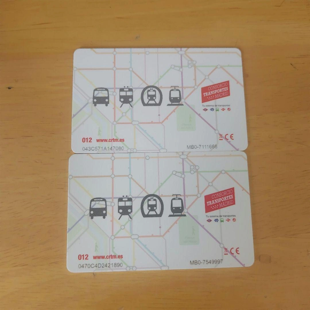 マドリードでメトロなどの交通機関を利用する際に必須となるカードです。 発行手数料が1枚毎に2.5€掛かりました。 残高1枚、1回分 もう一枚は残高なしです。 ご希望の方はお気軽にご連絡ください。
