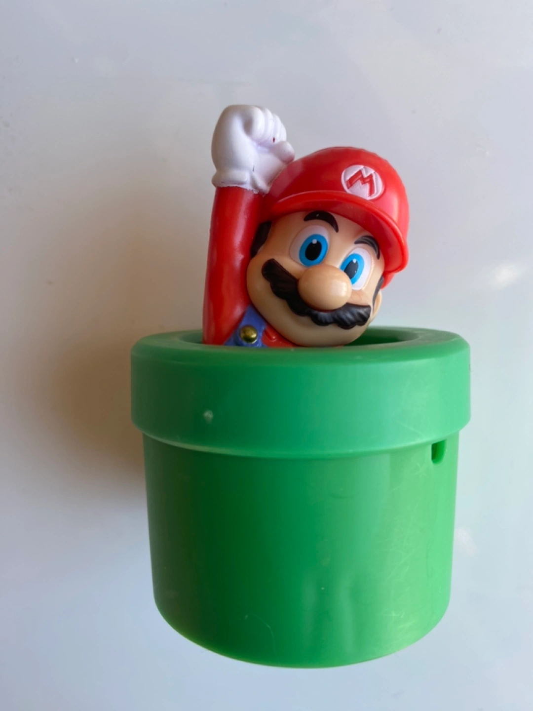 マリオのおもちゃ。 叩くと引っ込みますが、音なとなりません。