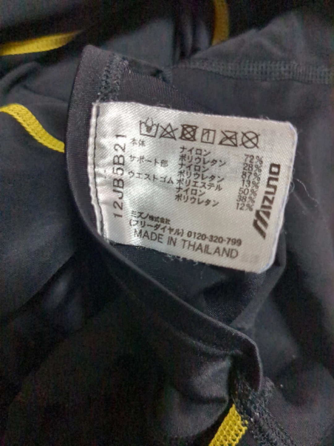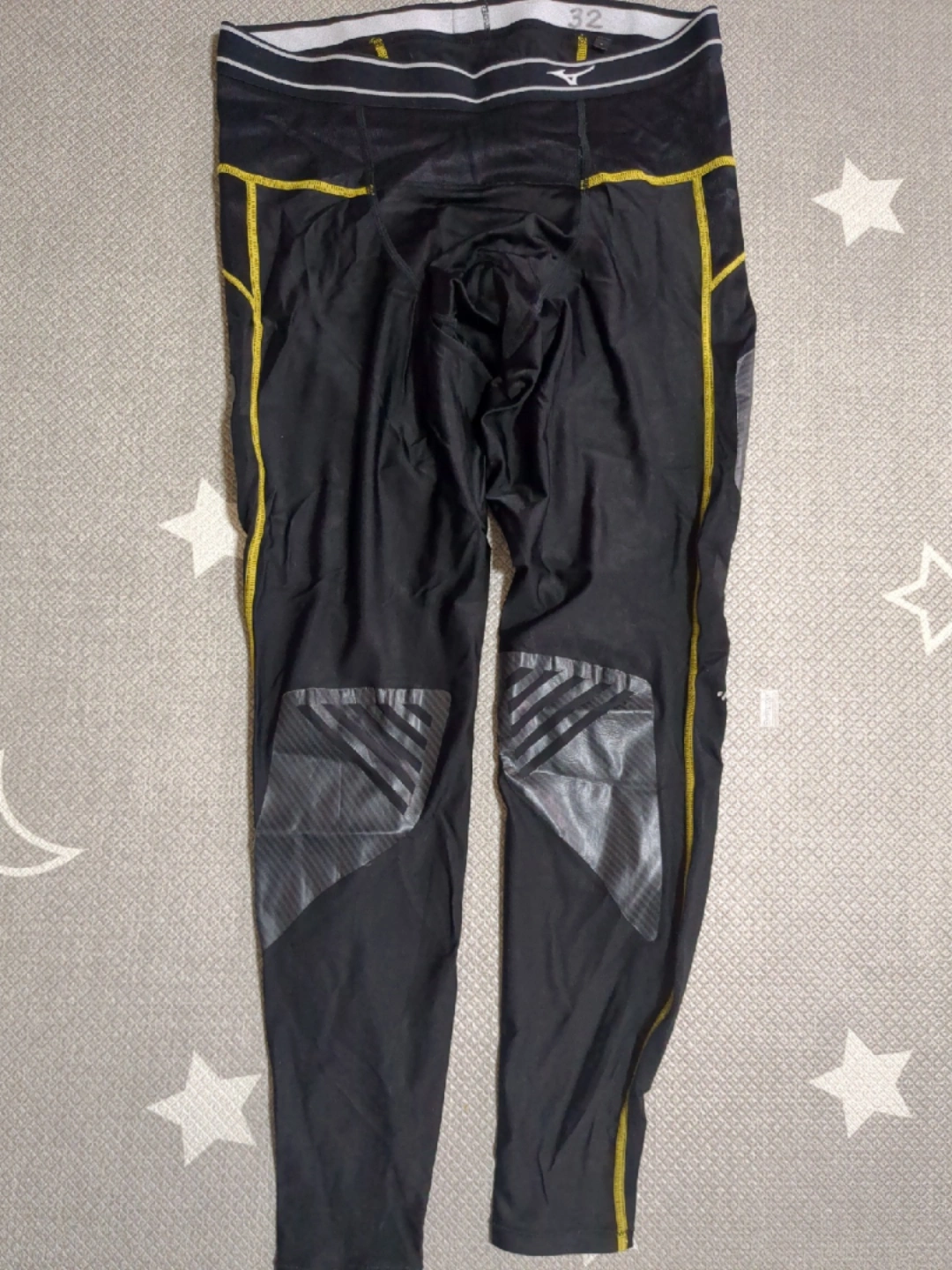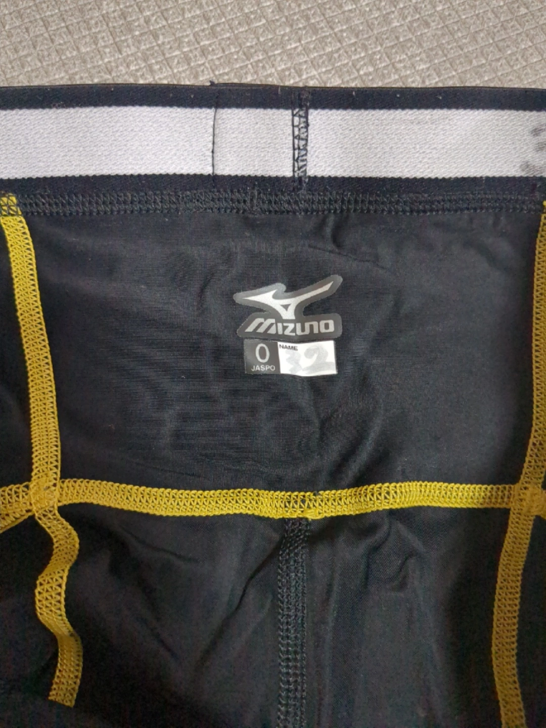 ミズノのスポーツタイツです ・カラー:ブラック ・サイズ:タグに0と記載(JASPO) ・品番:12JB5B21 ・デザイン:膝部分に模様あり ・使用感あり 中古品であることご了承ください ファウルカップを入れられるようになってます 他にも出品してます おまとめ割引致します