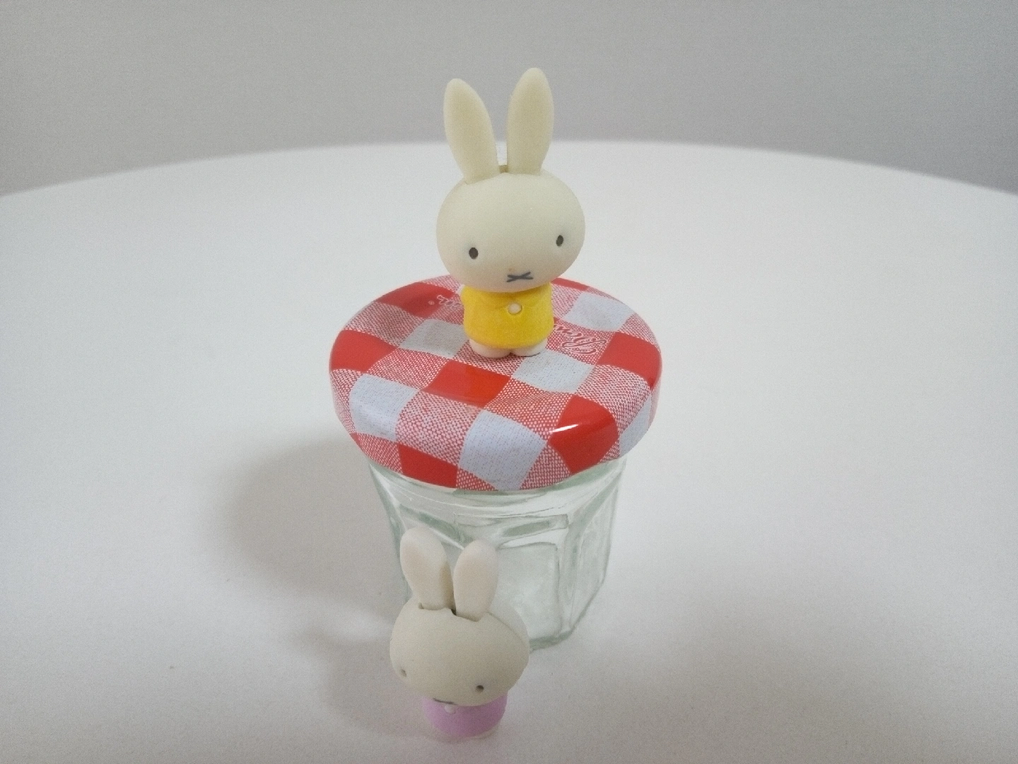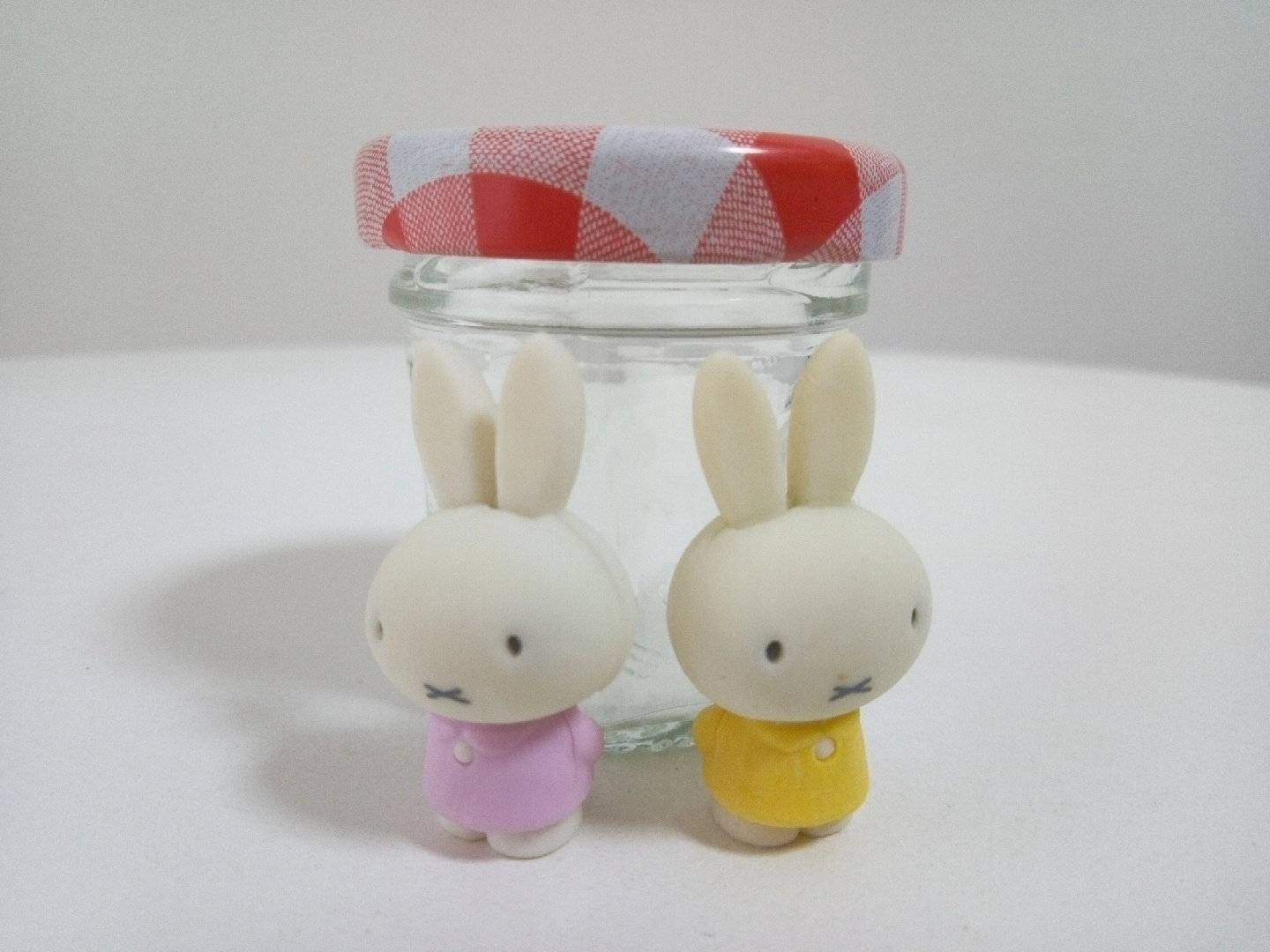 ミッフィーとジャムの空き瓶です。 ・ミッフィーは2体 ・瓶の蓋は赤と白のチェック柄です。 ミッフィー:1.5 × 3.5 空き瓶:4.5 × 5 ( 高さ ) センチ ジャムの空き瓶のシールを剥がした跡が少しあります。 中古品であることご了承ください。