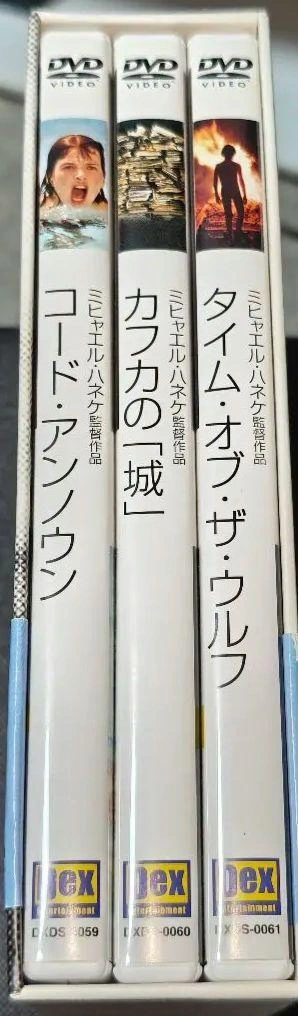 オマケでファニーゲーム タバコ吸わない、ペットいない部屋での保存です。 ミヒャエル・ハネケ DVD-BOX Vol.2 中古 5枚目の画像のようにVol.2の帯に若干の破れがあります。 後は中古にしては比較的きれいな方だと思います。 ディスクの拭き後や指紋があるかもしれませんが、ご了承ください。 Vol.2 コード・アンノウン カフカの「城」 タイム・オブ・ザ・ウルフ ミハエルハネケ 鬱映画 胸糞 バッドエンド オーストリア ご希望の方はお気軽にご連絡ください。