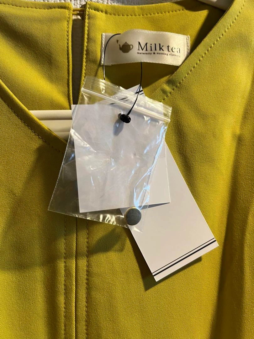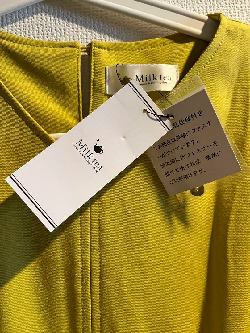 【ブランド】Milk tea 【商品名】Silvia RibbonOnepiece 【カラー】イエロー、ベージュ 【サイズ】フリーサイズ 【素材】ポリエステル100% 新品タグ付きで定価7,990円で販売中の商品ですが、着用機会がなさそうなので出品致しました。 生地がさらっとしていて、今の時期にもぴったりです。 ウエストリボン付きのマタニティワンピース、シルエットチェンジ可能で、軽量素材を使用。 マタニティ フォーマル オフィス服としてもok! 上品で可憐なシルエットが特徴のワンピースです。 授乳口付きで、マタニティ期から産後まで長く着用できます。ポケット付きで便利です。 ウエストリボンも未開封の袋に入ってあります! 授乳できるチャック2箇所! ポケットも2つで便利! よろしくお願いいたします。