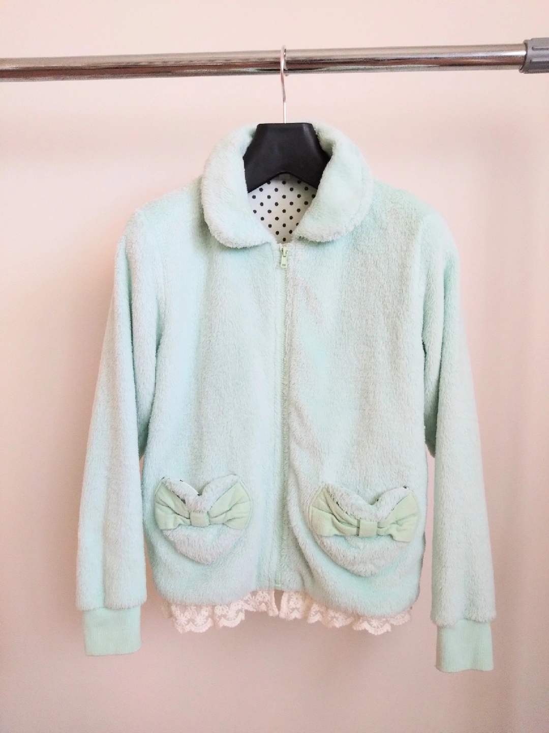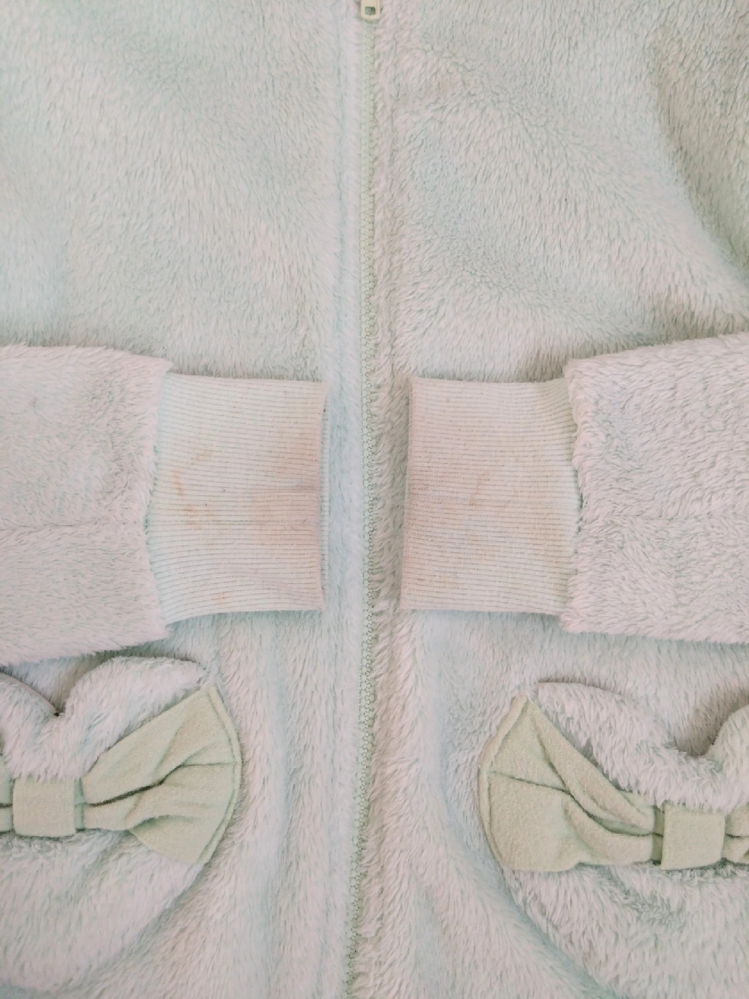 春秋用のアウターです。 外側はモコモコ素材で暖かそうです。 袖口に若干汚れがあります。 写真でわかりずらく申し訳ありません。 ご理解頂ける方宜しくお願い致します。