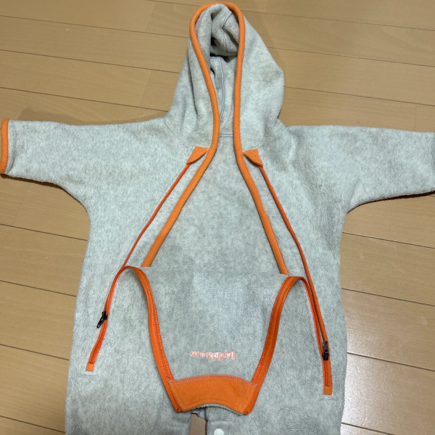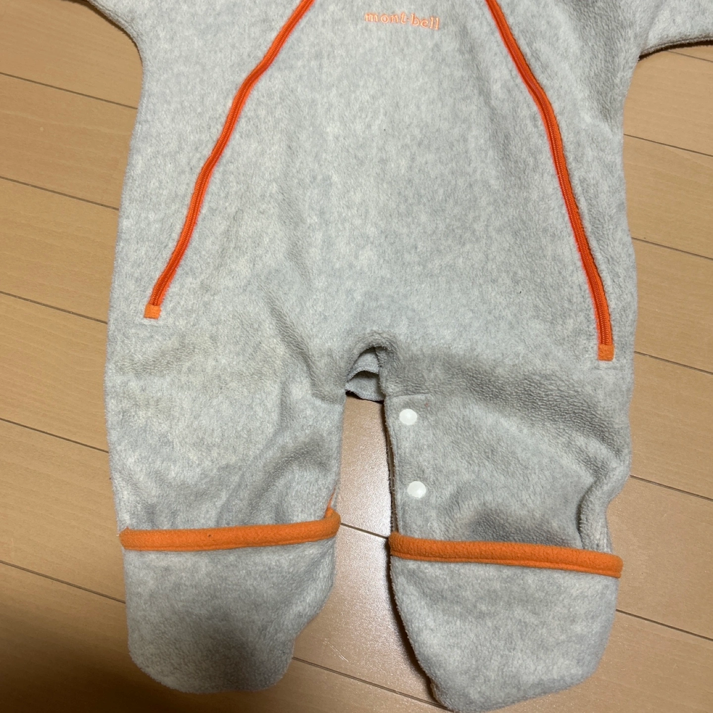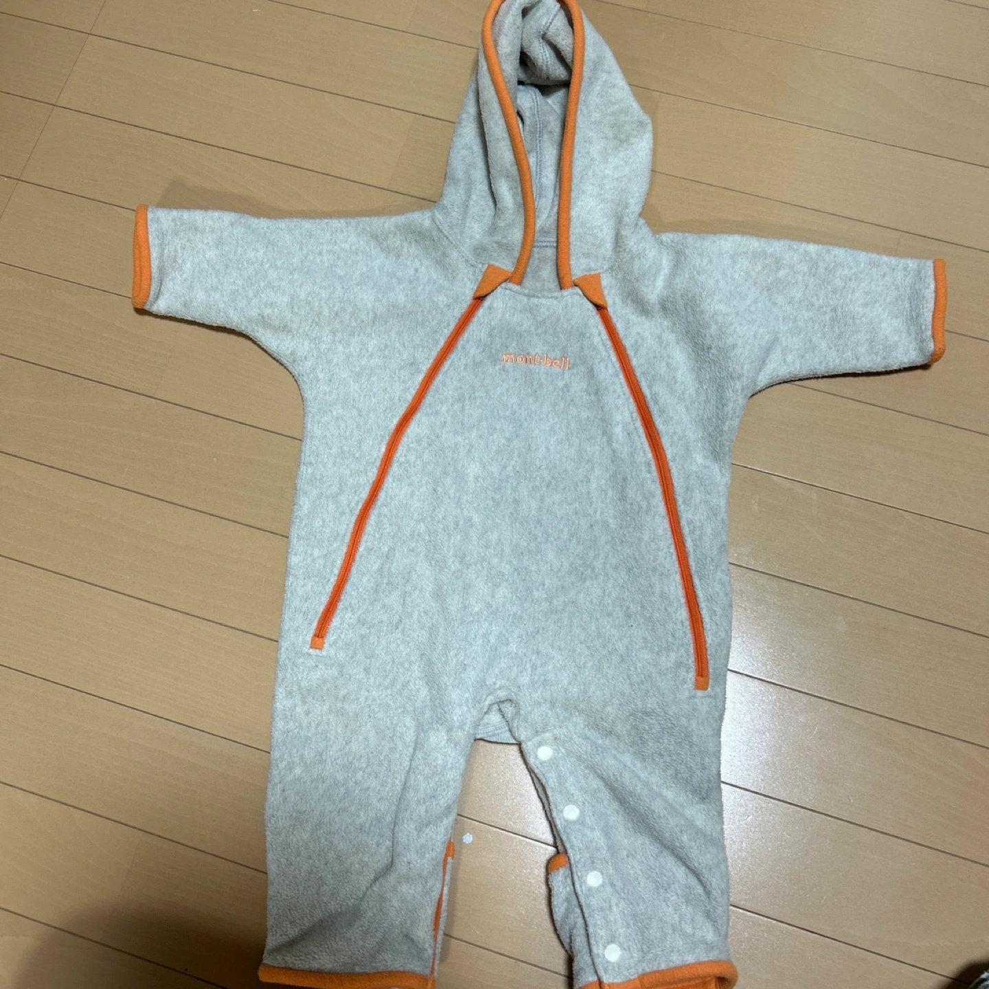 モンベルのベビー用カバーオールです 【情報】 ブランド:モンベル サイズ:FREE (身長50~70cm, 体重3~9kg) スタイルNO:1106247 カラー:グレー、オレンジ 【状態】 使用感少なめ 中古品であることご了承ください