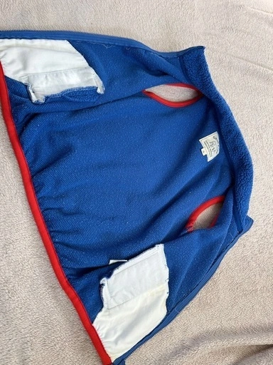 ユナイテッドアローズのフリースベストです。 青いフリースジャケットで、赤い縁取りとデザインポケットが付いています。 - 色: 青 - デザイン: フリースジャケット - アクセント: 赤い縁取りとポケットの模様 - スタイル: ジップアップ - ポケット: 前面に2つのポケット 記名後があります。 内側見えないところに少し汚れがあります。 ご希望の方はお気軽にご連絡ください。 186