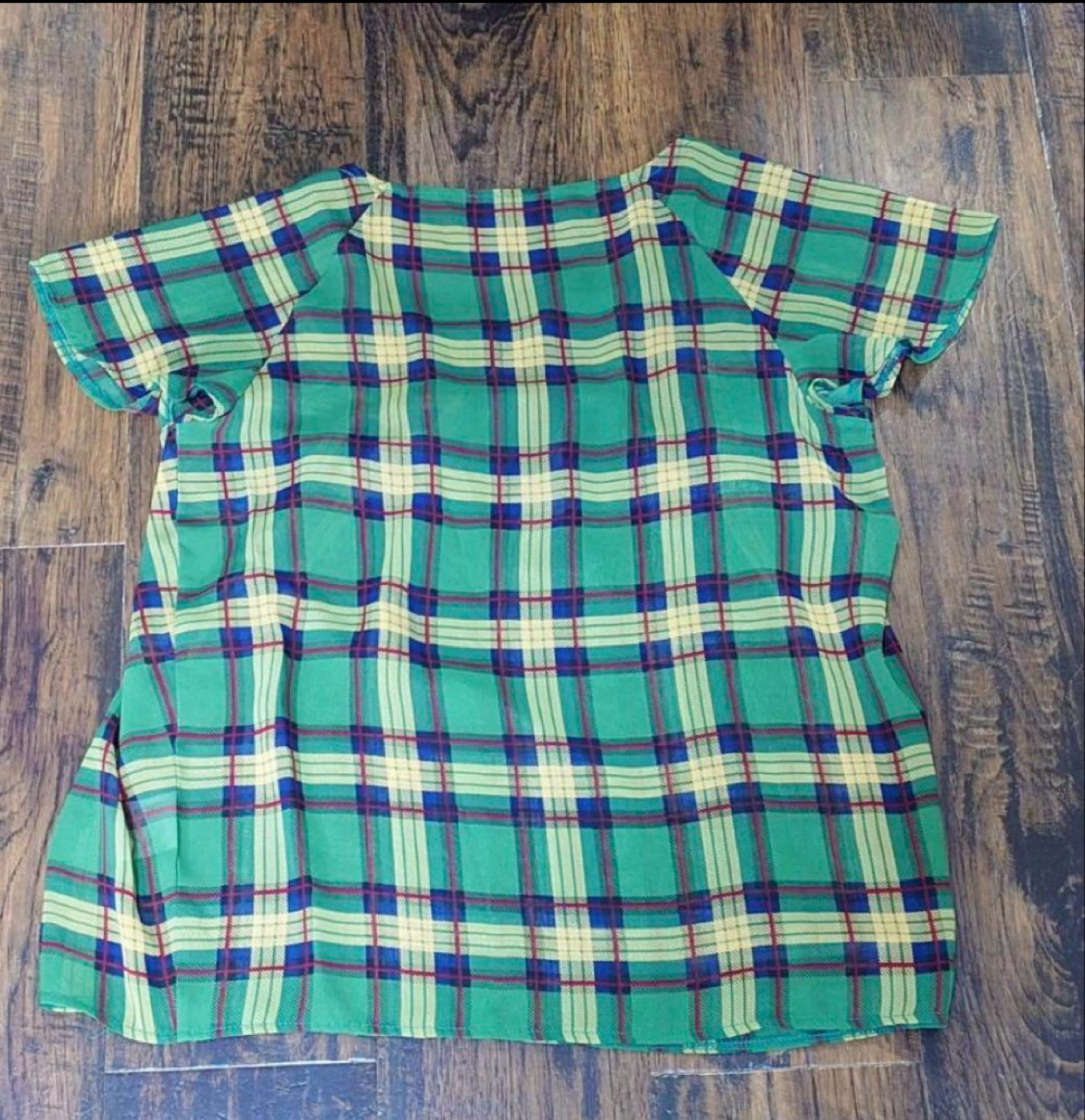 ユナイテッドアローズUnitedArrows夏用チェックのデザインチュニック 胸のところのデザインがかわいいシフォンチュニックです。 体型を拾わず、汗などもすぐに乾きます。 高級素材の上質なシフォンです。 普段使いにはもちろん、スーツの下にも着ていただけます。 人と少し違う着こなしが叶います。 はっきりしたサイズがわからないのでフリーサイズで出品致しますがMからLサイズの方でしたら着て頂けると思います。 カラー···グリーン 柄/デザイン···チェック 季節···春夏 汚れ・破れ・臭いなど···なし