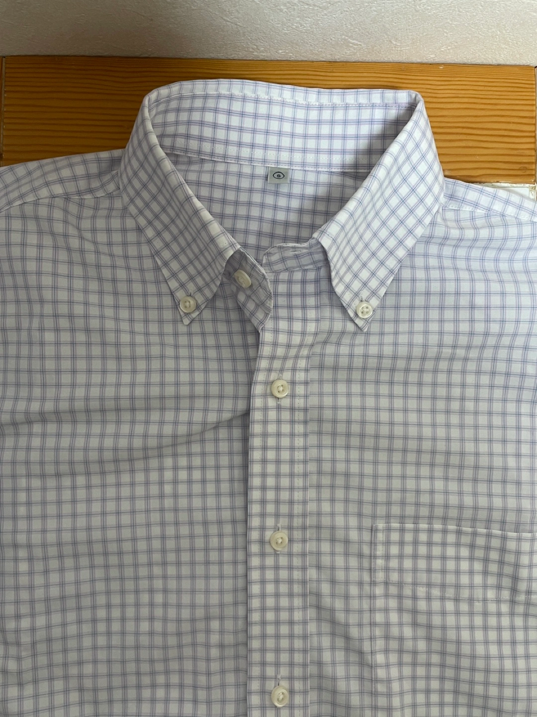 【スタイリッシュなデザイン】 このシャツは白と青のチェック柄で、カジュアルからビジネスシーンまで幅広く活躍します。 【快適な着心地】 長袖で、ボタンダウン襟のデザインが特徴的で、着用時にしっかりとした印象を与えます。 【実用的なポケット】 左胸にはポケットがあり、実用性も兼ね備えています。 - 色: 白と青のチェック柄 - 袖の長さ: 長袖 - ポケット: 左胸ポケットあり - 襟のデザイン: ボタンダウン襟 - 素材: 綿100% - 後ろのデザイン: シンプルなデザイン 受け渡し場所 地下鉄東西線 落合駅 総武線 東中野駅周辺 ご覧いただきありがとうございます。