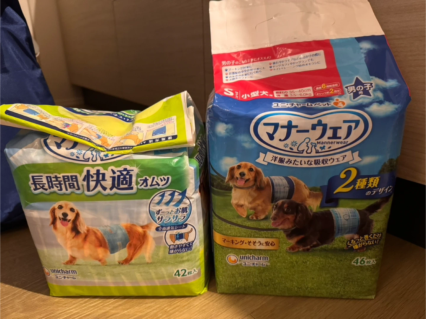 ユニチャームのマナーウェア(犬用オムツ)です 【情報】 ブランド:ユニチャーム 商品:男の子マナーウェア 対象:犬用 【状態】 ・数枚使って開封済み1パック ・未開封1パック ・袋に多少のシワあり 中古品であることご了承ください